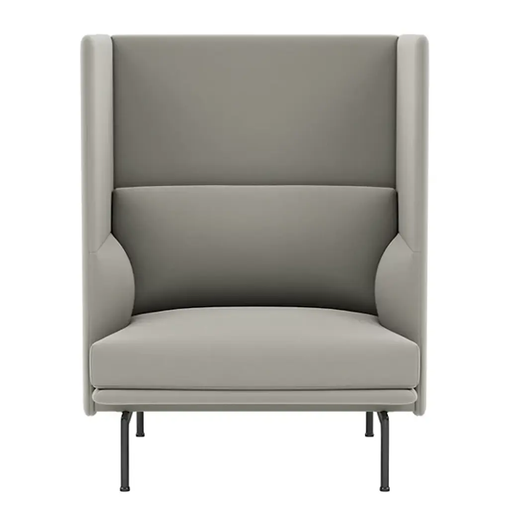 Muuto’s single-seater provides a maximum zone of individual privacy in Outline Highback’s tallest version, with its mix of soft, deeply proportioned comfort and protective boxlike enclosure. Offering a range of custom upholstery choices and trim legs in polished or black aluminum, it makes a welcome haven in open-plan areas.