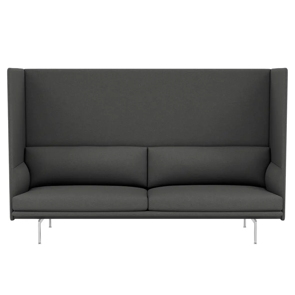 Outline Highback’s room-within-a-room proportions get their tallest take in Muuto’s large 3-seater version designed for conversation and collaboration. Along with its soft, deeply proportioned comfort and privacy-zone profile, the unit offers a customizing range of upholstery choices and either polished or black aluminum legs to suit myriad open-plan environs.