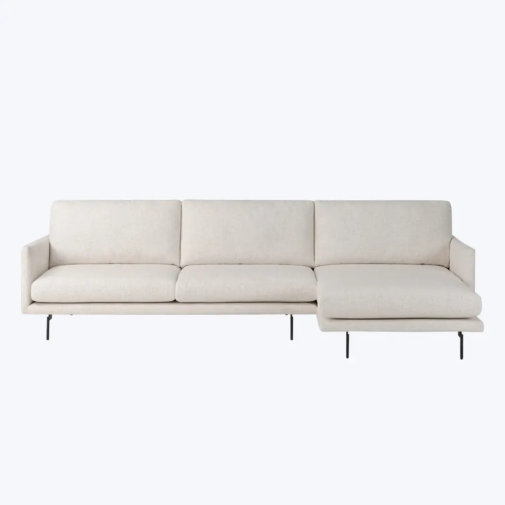 The Outline Sofa Chaise Longue has an elegantly refined expression, joined by spacious, extensive comfort. The sofa combines a light, textural expression with sculpted shapes and a generous seat, accomodating the changing needs of modern homes and professional spaces.