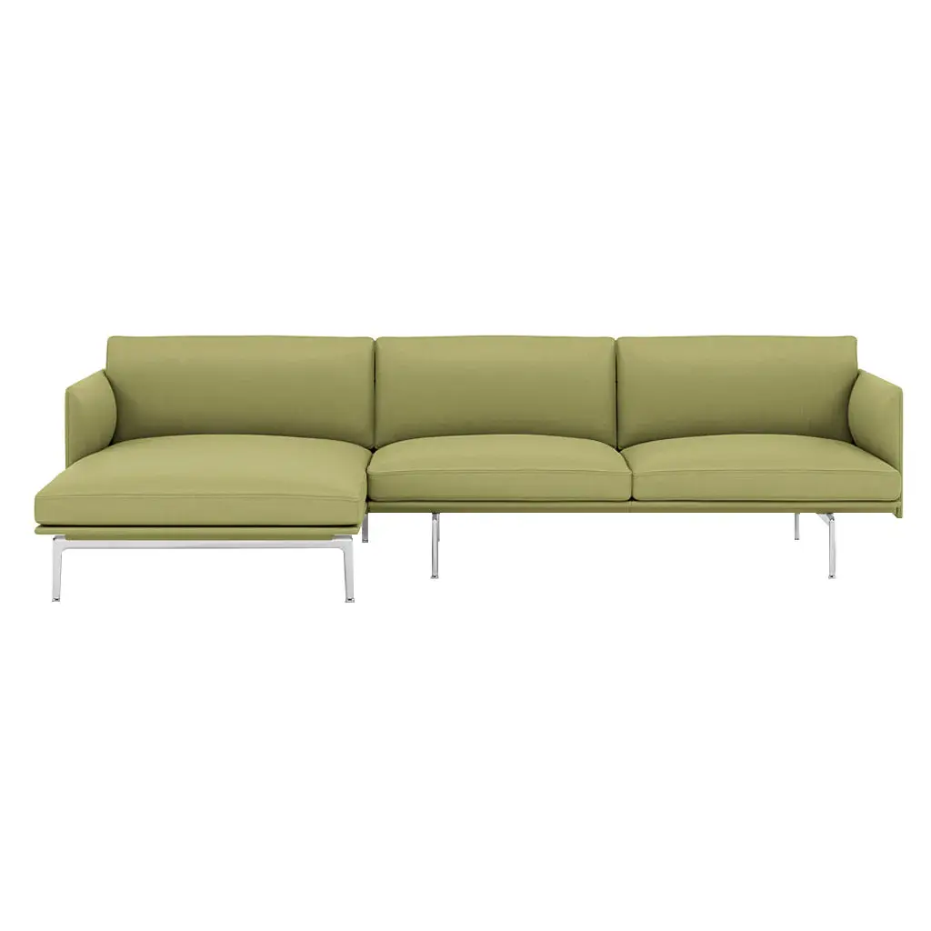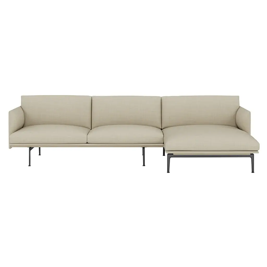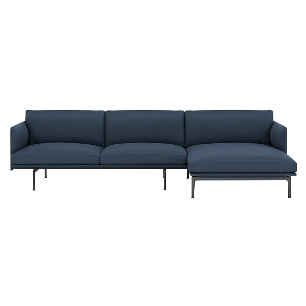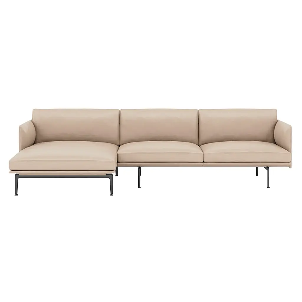 A sofa and chaise all-in-one seems a most covetable idea and now it's a near-heavenly reality in this Outline addition from Muuto. Prominent Norwegian design duo Anderssen & Voll combine deeply cushioned comfort—in the seating's lofty shape and generous seat and lounge—with a lightly scaled, sculptural appearance. The sofa practically floats on its slender aluminum legs with a durable powder-coat finish and the fine upholstery options range from textiles by Kvadrat or Arve to a silk leather from Camo.