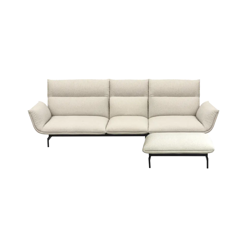 A sofa and chaise all-in-one seems a most covetable idea and now it's a near-heavenly reality in this Outline addition from Muuto. Prominent Norwegian design duo Anderssen & Voll combine deeply cushioned comfort—in the seating's lofty shape and generous seat and lounge—with a lightly scaled, sculptural appearance. The sofa practically floats on its slender aluminum legs with a durable powder-coat finish and the fine upholstery options range from textiles by Kvadrat or Arve to a silk leather from Camo.
