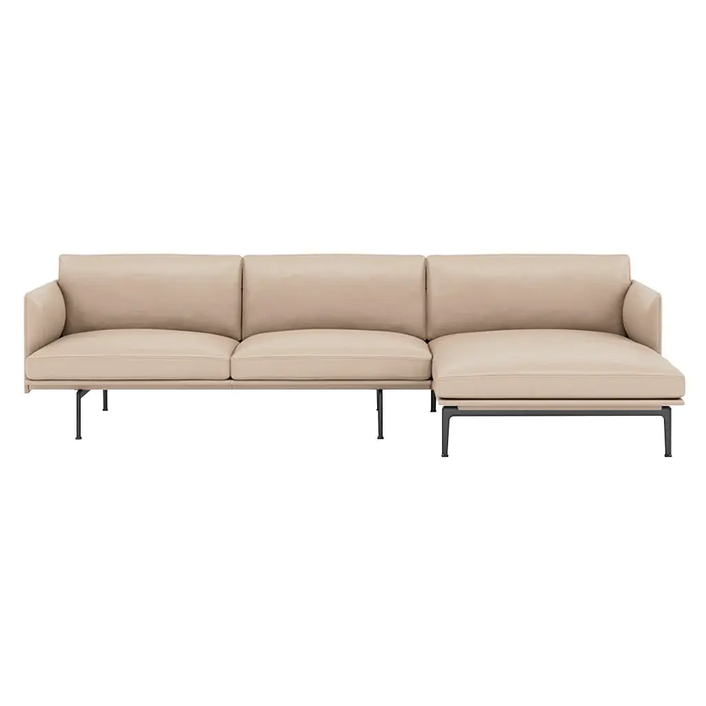 A sofa and chaise all-in-one seems a most covetable idea and now it's a near-heavenly reality in this Outline addition from Muuto. Prominent Norwegian design duo Anderssen & Voll combine deeply cushioned comfort—in the seating's lofty shape and generous seat and lounge—with a lightly scaled, sculptural appearance. The sofa practically floats on its slender aluminum legs with a durable powder-coat finish and the fine upholstery options range from textiles by Kvadrat or Arve to a silk leather from Camo.