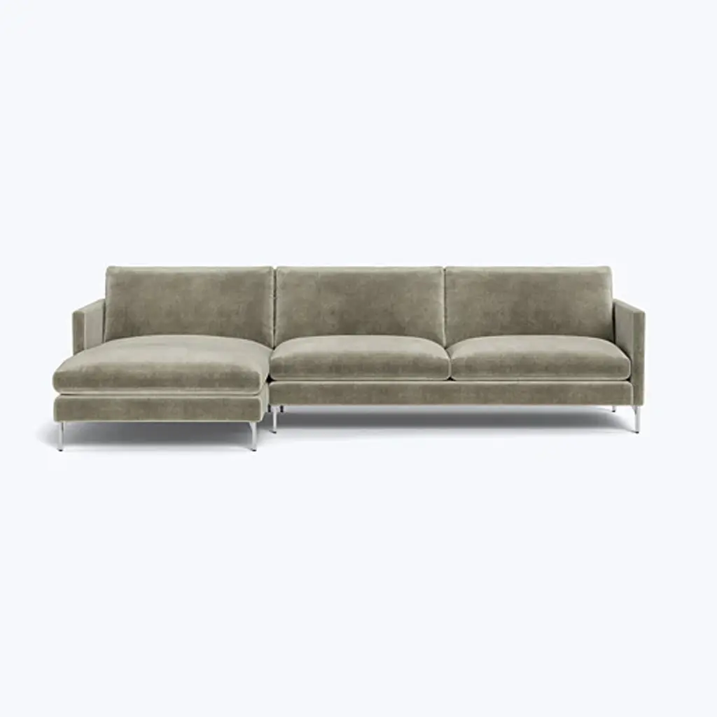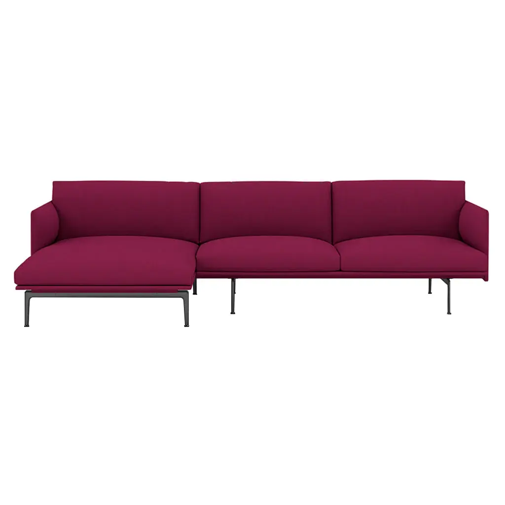 A sofa and chaise all-in-one seems a most covetable idea and now it's a near-heavenly reality in this Outline addition from Muuto. Prominent Norwegian design duo Anderssen & Voll combine deeply cushioned comfort—in the seating's lofty shape and generous seat and lounge—with a lightly scaled, sculptural appearance. The sofa practically floats on its slender aluminum legs with a durable powder-coat finish and the fine upholstery options range from textiles by Kvadrat or Arve to a silk leather from Camo.