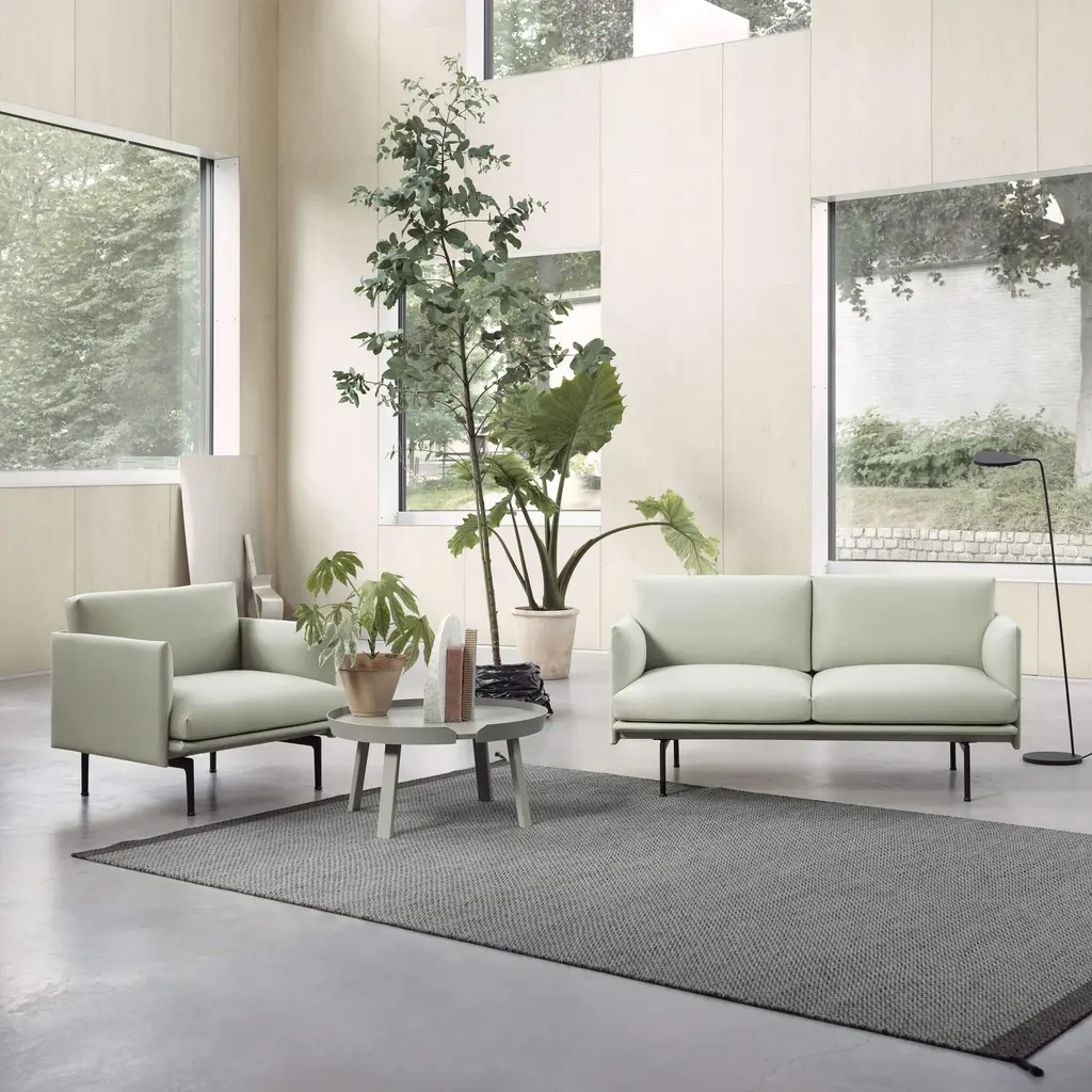 With Studio Sofa, Muuto adapts its Outline series for modern living spaces with their increasingly modest dimensions. Sliming down the proportions, designers Anderssen & Voll retain all of the deeply cushioned comfort of the signature sharply curved and plumped-up cushions, contained in a squared-off silhouette on slender powder-coated aluminum legs. It's all about Nordic nuance and superb craftsmanship, with luxurious upholstery options in fine textiles or sumptuous leather