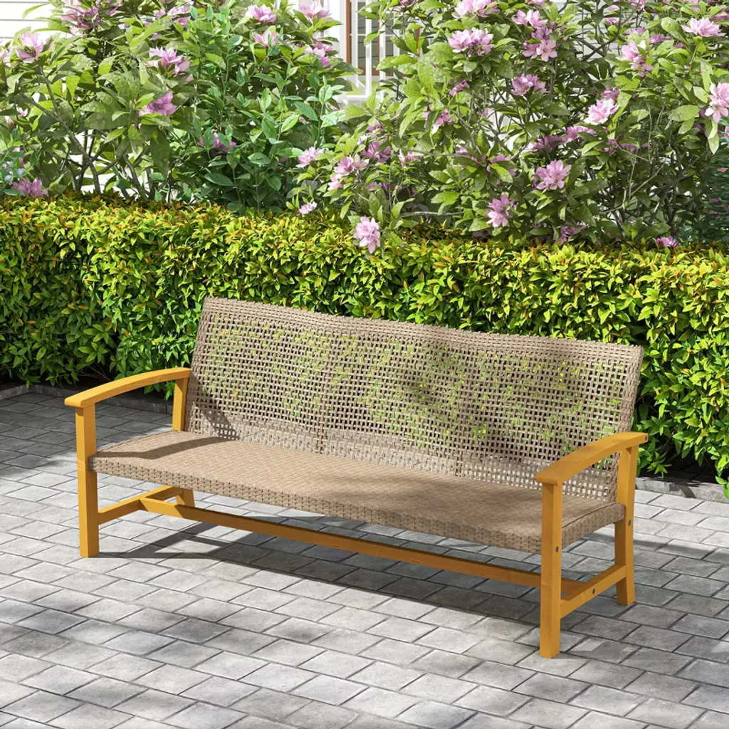 Outsunny 3-seat Wicker Outdoor Couch Patio Sofa, 1000 Lbs. Capacity, Acacia Wood Patio Furniture With Steel Seat Armrests For Backyard, Porch, Teak