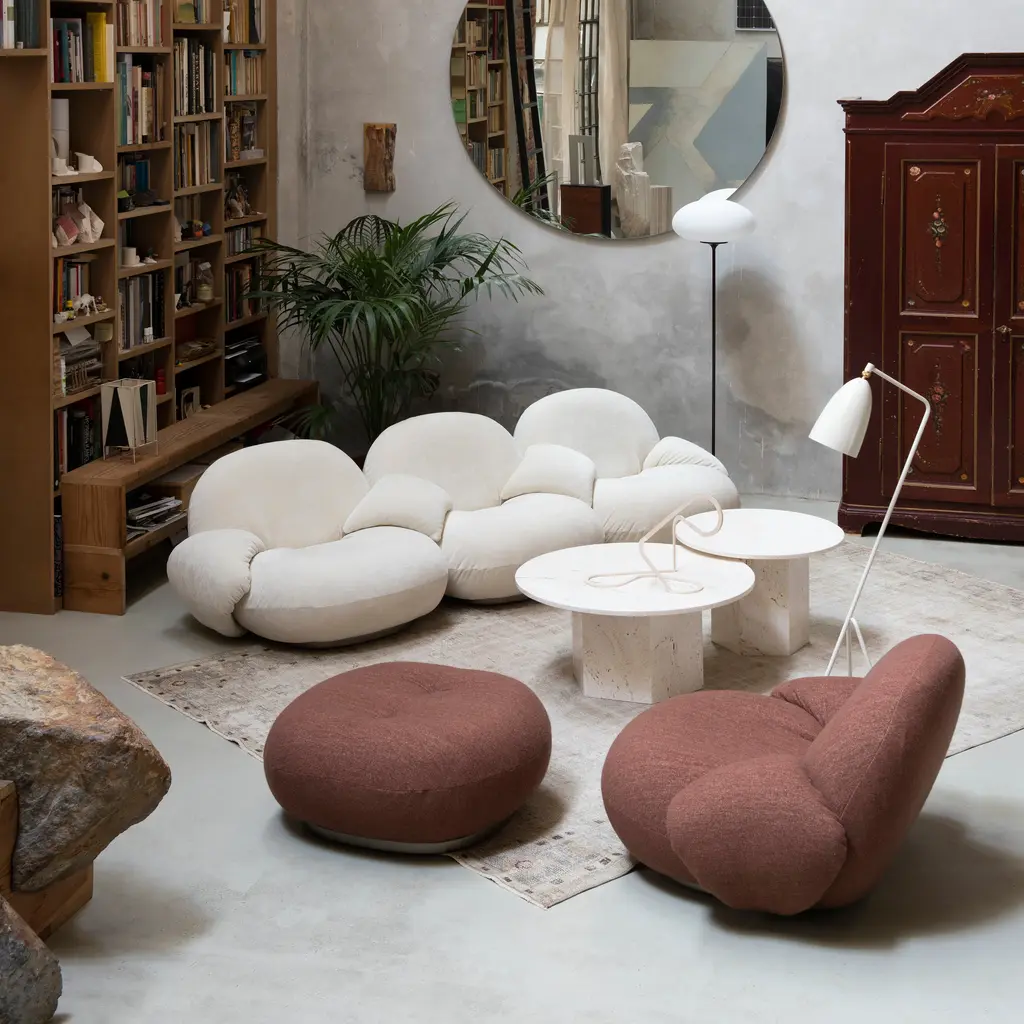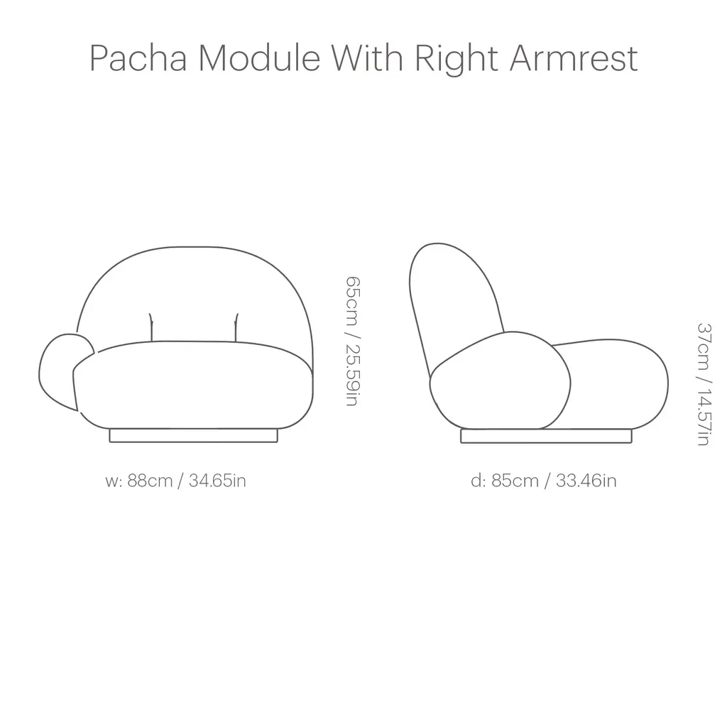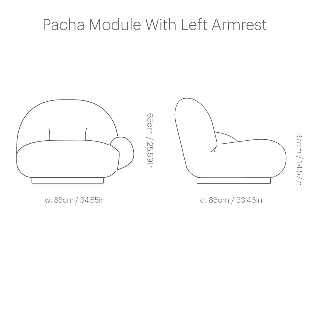 Likened to “sitting on clouds” by its creator Pierre Paulin, the Pacha seating collection includes an armless center and left and right side modules for creating a custom arrangement. The designer’s 1975 concept was ahead of its time but the comfort of its plump curves and lounge-like, low-to-the-floor stance have proved enduring. Reintroduced by Gubi, Pacha displays its considerable charms anew in an extensive range of customized upholstery selections.