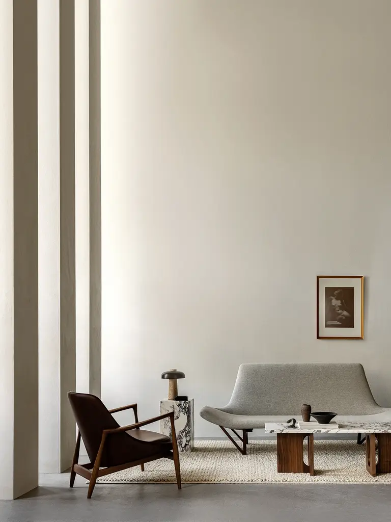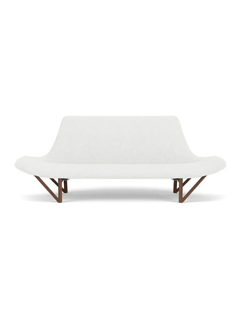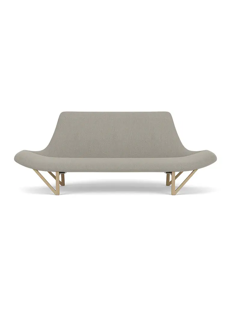 An elegant masterpiece by the husband-and-wife designer duo Tove and Edvard Kindt-Larsen, the Pagoda Sofa is unknown to most. Avantgarde and artistic for its time, its low, almost flat, armrests and beautiful V-shaped legs make it light and precise in its design language – and give the sofa a contemporary look. Taking its name from Asian architecture, it is expressive and unique in its simplicity – much like the temples it refers to. First presented to the world in 1956, today it remains a striking piece of design. Available in natural oak or walnut and upholstered in leather.