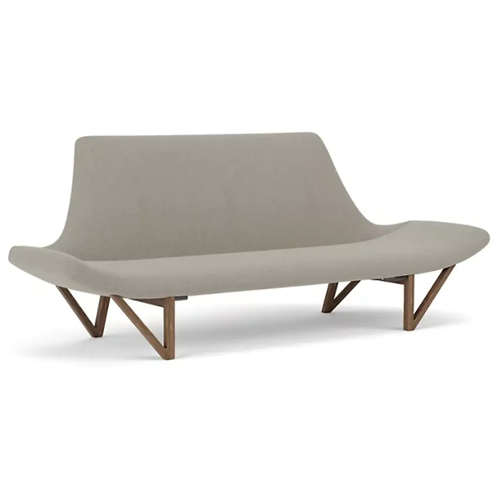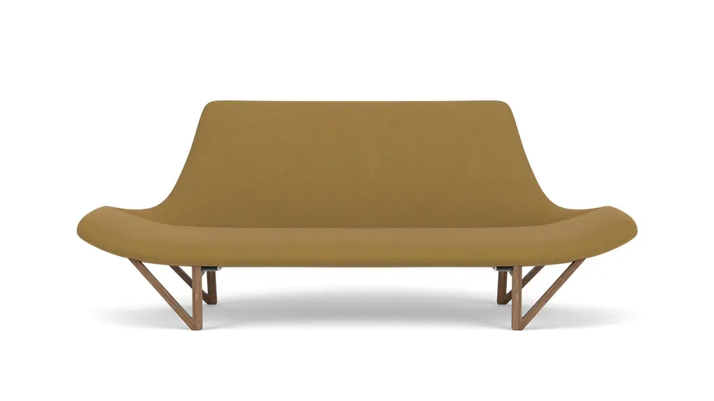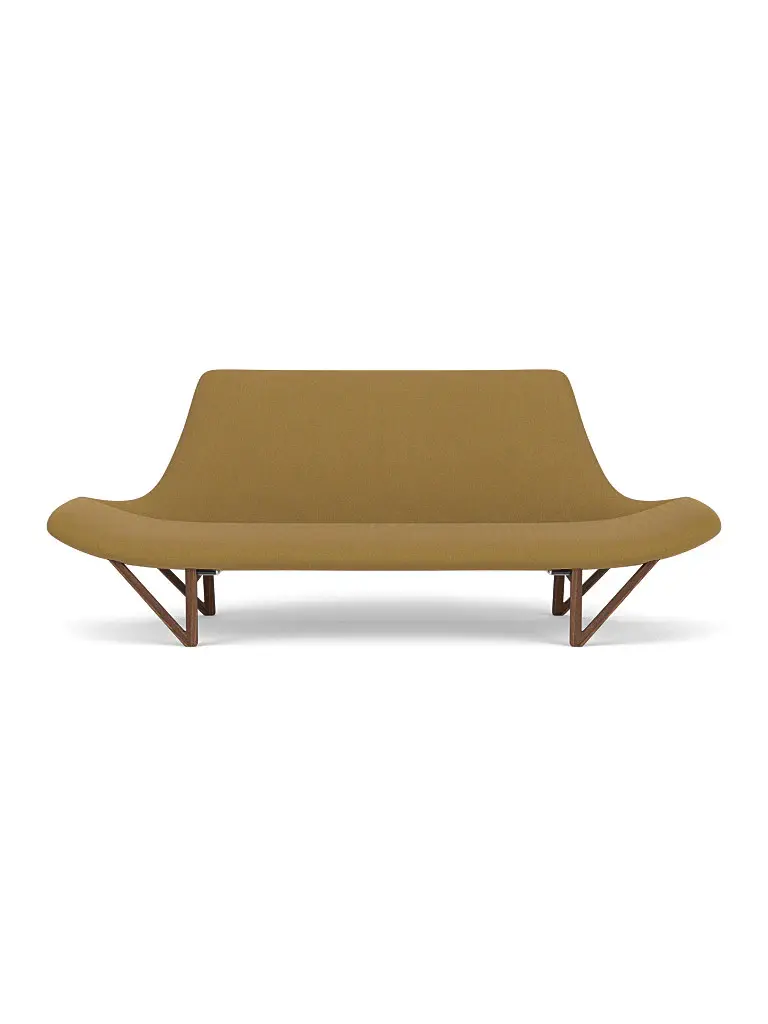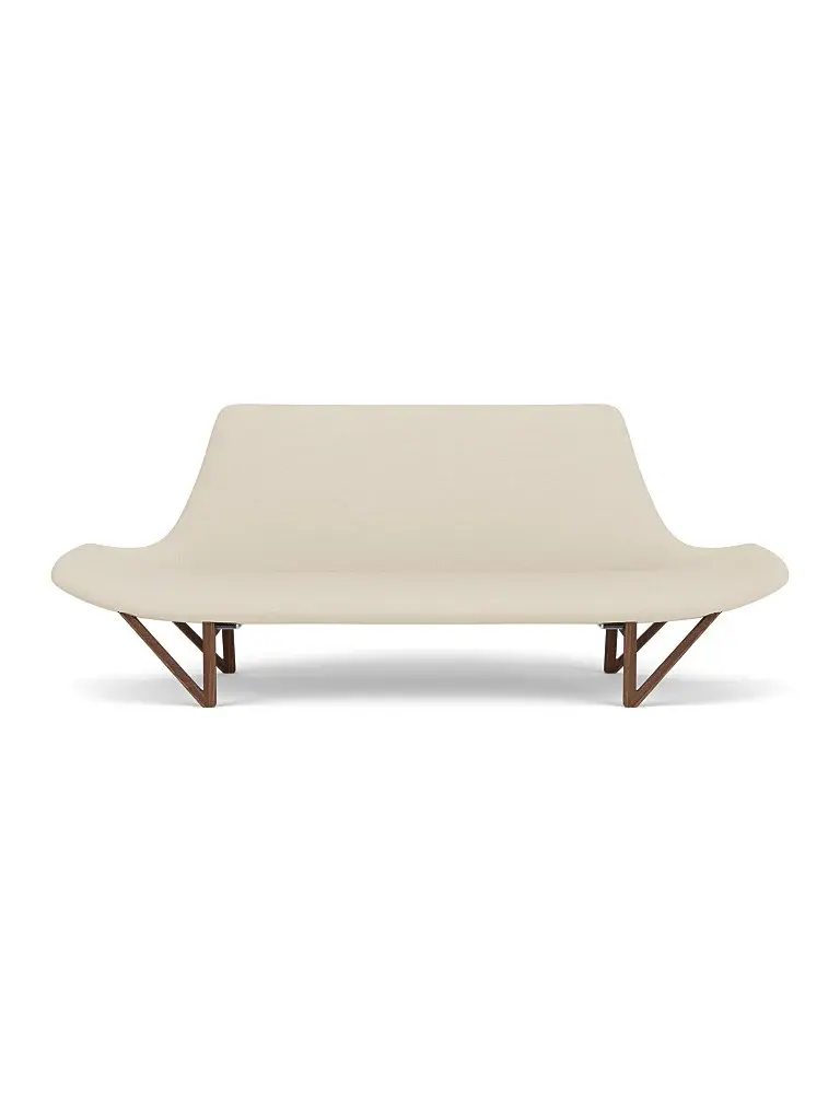 An elegant masterpiece by the husband-and-wife designer duo Tove and Edvard Kindt-Larsen, the Pagoda Sofa is unknown to most. Avantgarde and artistic for its time, its low, almost flat, armrests and beautiful V-shaped legs make it light and precise in its design language – and give the sofa a contemporary look. Taking its name from Asian architecture, it is expressive and unique in its simplicity – much like the temples it refers to. First presented to the world in 1956, today it remains a striking piece of design. Available in natural oak or walnut and upholstered in leather.
