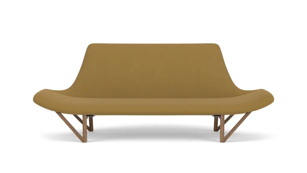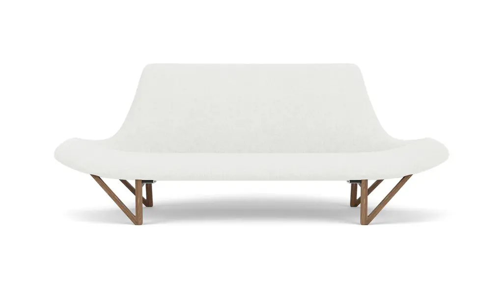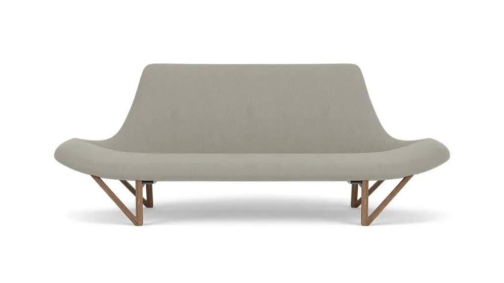 The inventive, curvilinear shape of the Pagode Sofa is as relevant today as it was when first designed in 1956. Looking to Asian architecture and temples for inspiration, the elegant design features beautifully crafted V-shaped wooden legs and a low seat with distinctive armrests, and a high back to cradle and support. Designed by Tove and Edvard Kindt-Larsen, Audo Copenhagen.