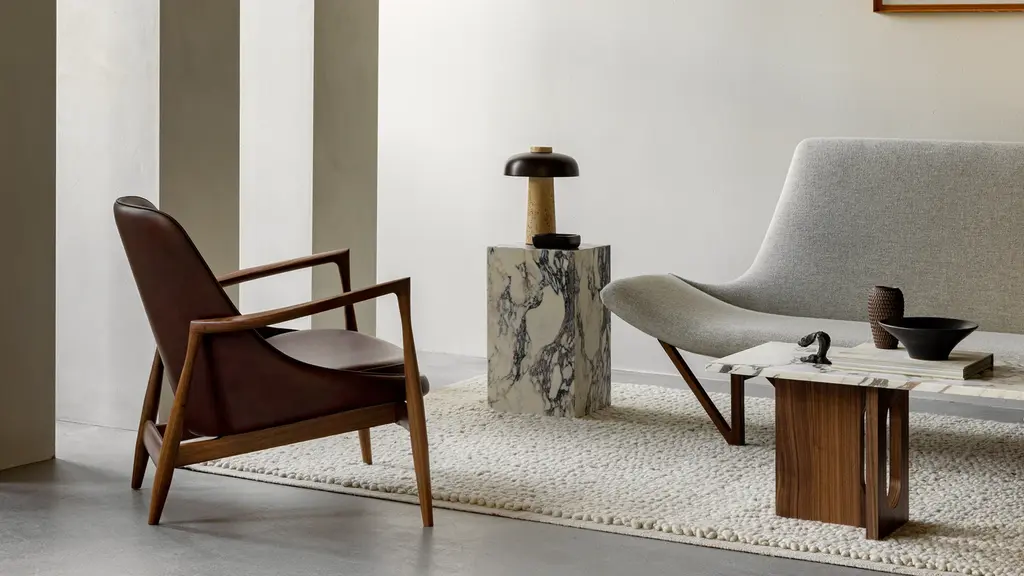 The inventive, curvilinear shape of the Pagode Sofa is as relevant today as it was when first designed in 1956. Looking to Asian architecture and temples for inspiration, the elegant design features beautifully crafted V-shaped wooden legs and a low seat with distinctive armrests, and a high back to cradle and support. Designed by Tove and Edvard Kindt-Larsen, Audo Copenhagen.