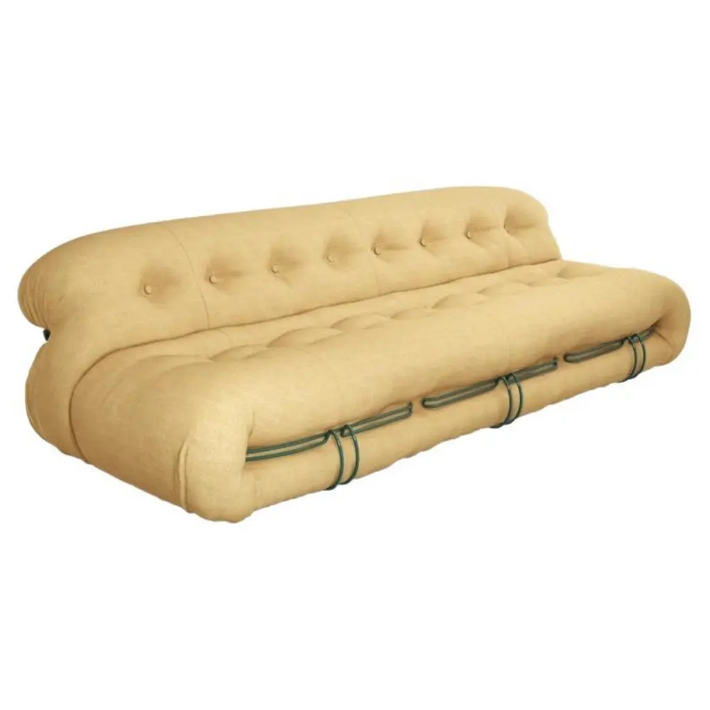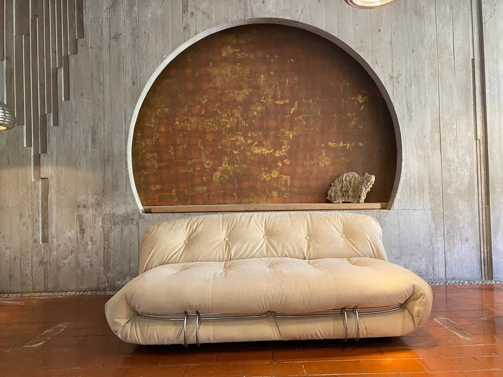 Afra & Tobia Scarpa, Soriana Sofas, Cassina, Italy, 1970s.Afra (1937-2011) & Tobia (1935-) Scarpa both studied at the Venice Institute of Architecture. Their pieces are exhibited in many museums worldwide, collections the MoMa in New York and the Musée du Louvre in Paris. the Soriana model is certainly one of their most iconic and representative creations, which in 1970 won the most prestigious Italian design award, the "Compasso D'Oro".The sofas comes from the waiting room of an important hotel designed by the architect Takahama. It has been cleaned and sanitized, we really like the type of fabric and the color and we decided to keep what we found but can be reupholstered in any material. Our atelier would be glad to customize the finishing of your piece.