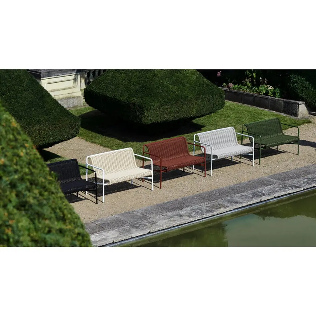 The Palissade Cord lounge sofa updates the look of HAY's beloved Palissade range. The stylish sofa still features the same familiar curved frame, but instead of the usual steel, the Palissade Cord sofa's seat is made from recycled polyester cord, adding a summery lightness to the lounge sofa's otherwise robust appearance. Ronan & Erwan Bouroullec spent no less than two years refining the Palissade range and it paid off! The result is a sturdy yet extremely elegant collection of outdoor furniture with a graphic look that is suitable for terraces, balconies, gardens and public spaces alike. The Palissade collection is designed to stand the test of time and weather, and its components make it easy to put together a functional outdoor furniture set for the home or summerhouse.
