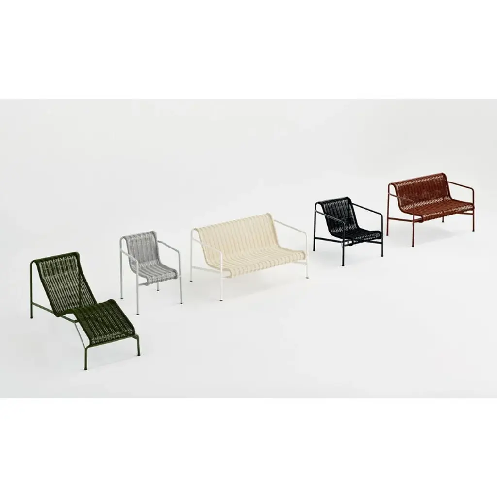 The Palissade Cord lounge sofa updates the look of HAY's beloved Palissade range. The stylish sofa still features the same familiar curved frame, but instead of the usual steel, the Palissade Cord sofa's seat is made from recycled polyester cord, adding a summery lightness to the lounge sofa's otherwise robust appearance. Ronan & Erwan Bouroullec spent no less than two years refining the Palissade range and it paid off! The result is a sturdy yet extremely elegant collection of outdoor furniture with a graphic look that is suitable for terraces, balconies, gardens and public spaces alike. The Palissade collection is designed to stand the test of time and weather, and its components make it easy to put together a functional outdoor furniture set for the home or summerhouse.