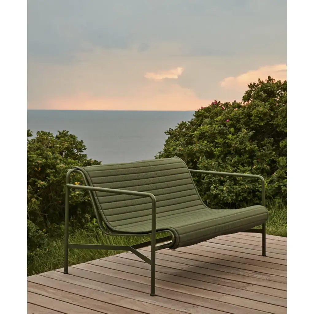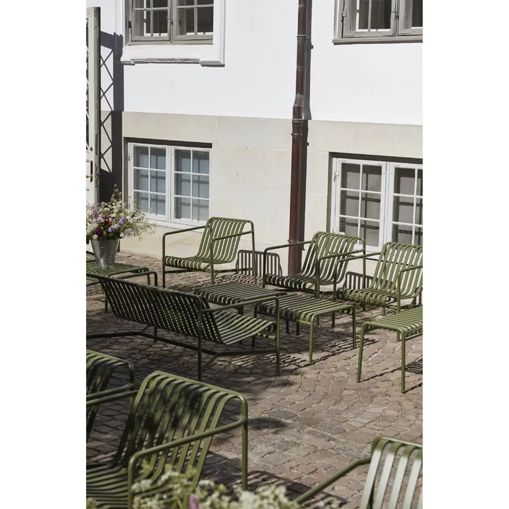The sleek yet robust Palissade lounge sofa is a member of HAY’s versatile outdoor furniture collection. Palissade outdoor furniture features a strong, graphic design that consists of simple steel tubes and slats. Ronan and Erwan Bouroullec worked with the collection for two years and created a range of simple, balanced pieces that are well suited for terraces, balconies, gardens, cafés and public spaces. The Palissade chairs, tables and benches are sturdy but elegant, and perfect for outdoor use, since wind and water will pass through the galvanized steel frame. The Palissade furniture was designed to age well and its muted color palette adds to the timeless and versatile appearance.