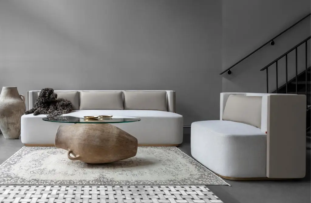 Papillonne Modern Three Seater Sofa With Brass Accessory