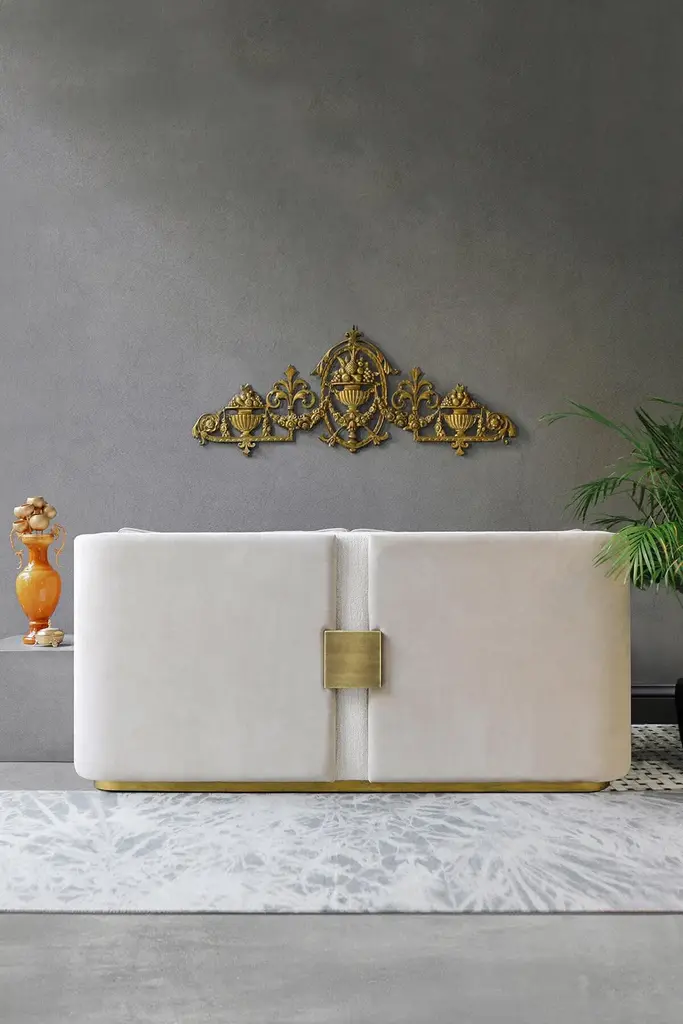 Designed to maximize both form and comfort, the Papillonne two seater sofa will add a unique style to your space.You can combine different fabrics for back and front of sofa or choose just one fabric. Also you can choose the metal accessory's materials like brass plated metal, black painted metal.Measures: length: 65'' / depth: 28.4'' / height: 28.7''-Spring upholstery -32 DNS HR Foam-1st grade Alder frame-Metal accessories.UPHOLSTERED PRODUCT USE AND CARE Dry clean your product and refer to the sales form for special care instructions. Call us for re-upholstery of your product.When choosing your fabric, submit your flammability certificate request.Avoid using upholstery perfumes directly on the product. Instead, spray in the air around the product to ensure dispersion rather than direct contact.