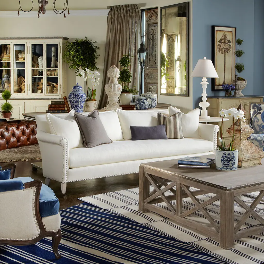 The Paris collection also includes a loveseat and a chair (sold separately). Ships In 8-10 Weeks Two loose back pillows One bench cushion As Shown Fabric: Milford Cream As Shown Finish: Sugar If you choose to purchase COM, once you have placed your order a customer service rep will contact you regarding where to send your fabric. Please note that current lead time is 17-19 weeks once your fabric arrives at the factory, and if unused fabric is under 1.5 yards, it cannot be sent back to you.This product can be special ordered in additional fabrics, leathers, finishes, and cushion fillings. Click here to email us for for additional information about special ordering.This image is for illustrative purposes only. The colors shown are accurate within the constraints of lighting, photography, and the color accuracy of your screen.