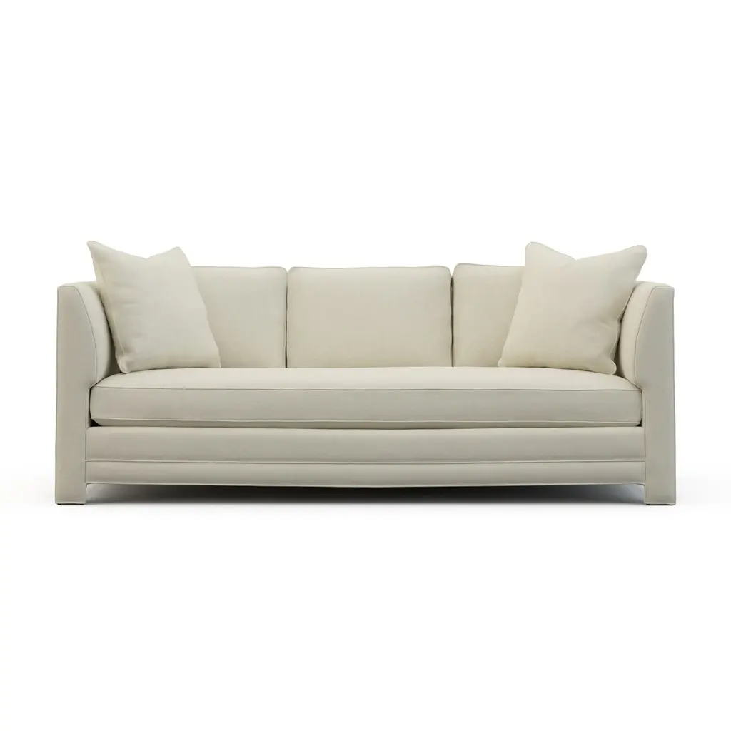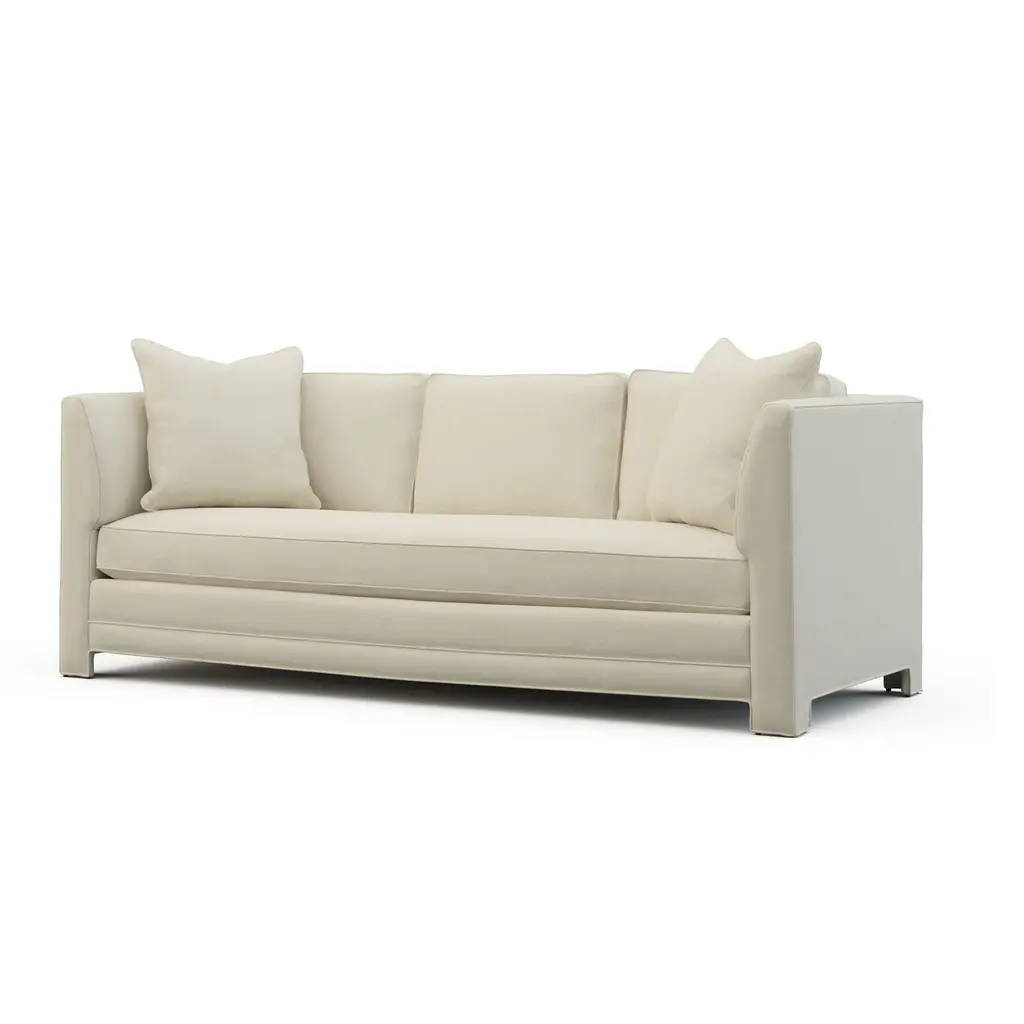 Inspired by iconic 1970's designer Billy Baldwin, the Parker Sofa reimagines the classic Parsons leg style with a modern twist on the tuxedo frame. Featuring a saddle arm cushion for extra comfort, this contemporary sofa boasts sleek lines and meticulous attention to detail. Its bench cushion adds a clean, updated look that enhances any living room decor. Ships In 8-10 Weeks Three loose back pillows One loose seat cushion As Shown Fabric: Rayburn Oatmeal, Vanceboro Mauve with Adalio White Contrast Welt (lifestyle) If you choose to purchase COM, once you have placed your order a customer service rep will contact you regarding where to send your fabric. Please note that current lead time is 17-19 weeks once your fabric arrives at the factory, and if unused fabric is under 1.5 yards, it cannot be sent back to you.This product can be special ordered in additional fabrics, leathers, and cushion fillings. Click here to email us for for additional information about special ordering.This image is for illustrative purposes only. The colors shown are accurate within the constraints of lighting, photography, and the color accuracy of your screen.