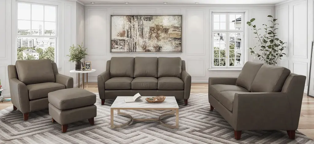 The Pavia Sofa is proudly made in the USA from 100% top grain leather and is built to last with its Limited Lifetime Frame & Spring warranty. It begins with a stylish dome arm offering a contemporary yet relaxed feel. The dome arm transitions into a lean wing back detail giving the Pavia additional visual interest and definition. It's then upholstered in a soft and subtly two-toned Aniline Plus top grain leather which retains the natural beauty and feel of the leather hide while providing superior protection against everyday use. Fully padded side & back panels provide additional structure and quality to an already excellent product.
