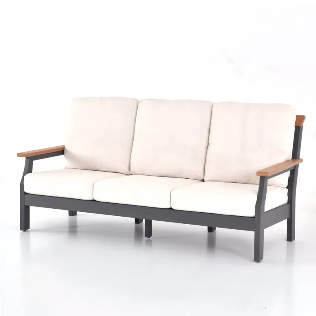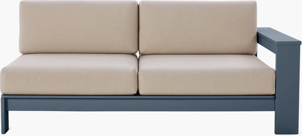 Sprawl out in the spacious Pepin Sofa (2025). Wide armrests, a deep seat, and thick cushions create a welcoming space to unwind. Made from partially recycled and fully recyclable plastic, with moisture-repellent cushions covered in Sunbrella fabric, the sofa is built for long sessions outdoors. Its raised frame makes sitting and standing effortless, whether you're enjoying a good book or good company. Made in the USA.