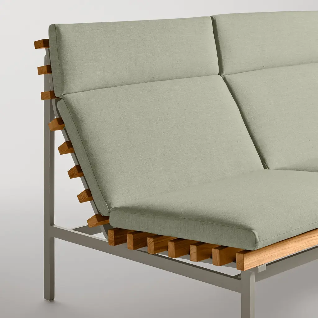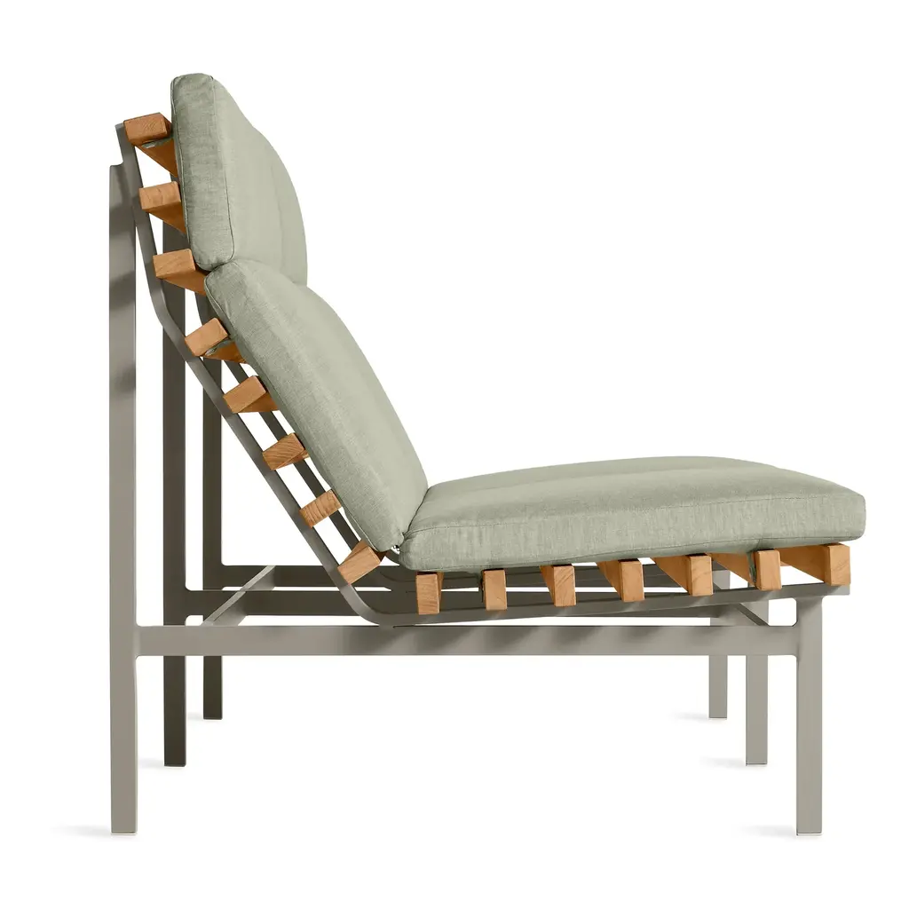 Rectangular FSC®-certified teak wood slats and a matte white or grey aluminum frame cut a stylish and airy swath, whether it be the Riviera or the suburbs of Reno. Perch makes every day look like vacation. Beautiful to behold from the back side, the side side or the front side, the collection is made lounge-worthy with cushions covered in mildew and fade resistant Sunbrella® fabric.