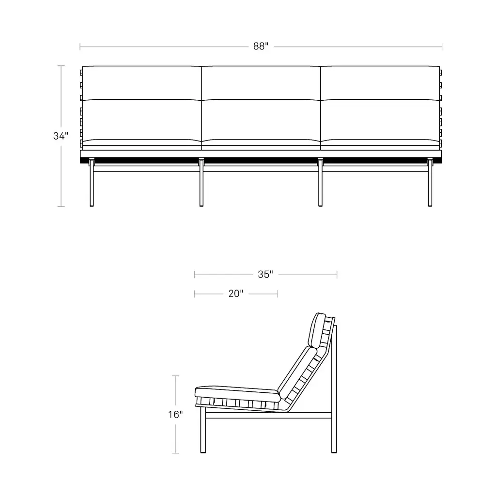 Elevate your outdoor space with the Perch Outdoor 3 Seat Sofa. Its rectangular teak slats and matte white aluminum frame exude a tasteful and airy vibe, evoking images of the Riviera or coastal resorts. Lounge in style with cushions featuring mildew and fade resistant Sunbrella fabric, ensuring total relaxation with peace of mind. Highlights