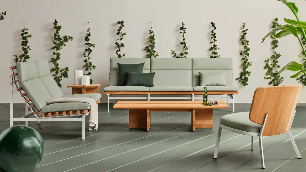 Rectangular FSC®-certified teak wood slats and a matte white or grey aluminum frame cut a stylish and airy swath, whether it be the Riviera or the suburbs of Reno. Perch makes every day look like vacation. Beautiful to behold from the back side, the side side or the front side, the collection is made lounge-worthy with cushions covered in mildew and fade resistant Sunbrella® fabric.