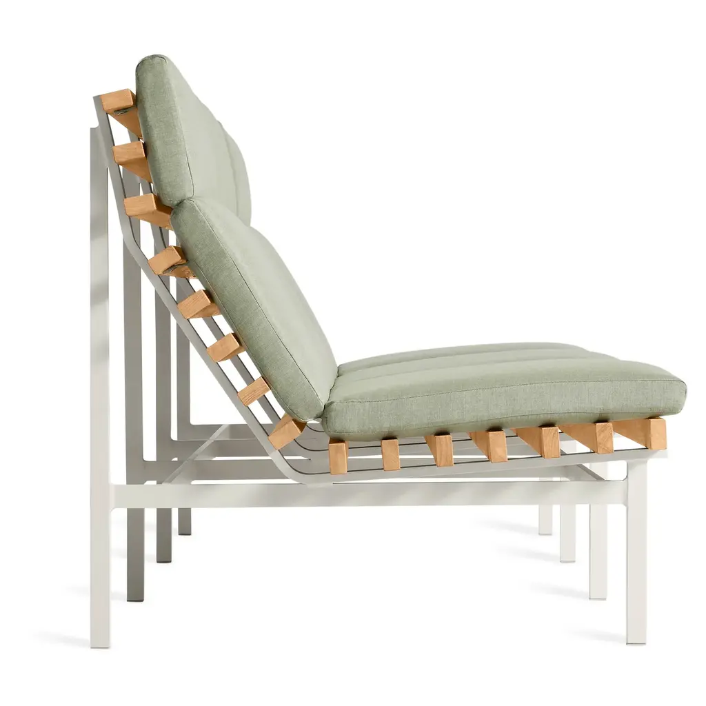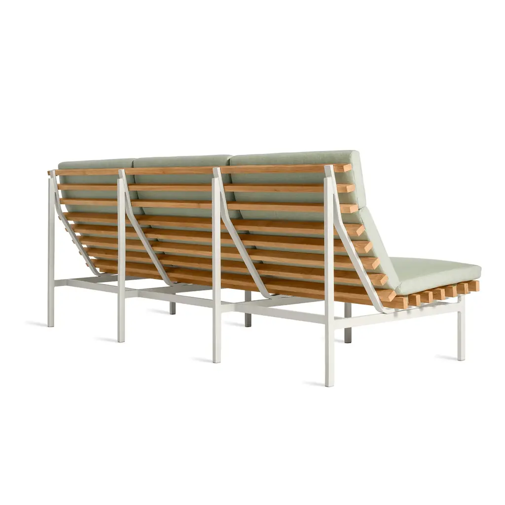 Rectangular FSC®-certified teak wood slats and a matte white or grey aluminum frame cut a stylish and airy swath, whether it be the Riviera or the suburbs of Reno. Perch makes every day look like vacation. Beautiful to behold from the back side, the side side or the front side, the collection is made lounge-worthy with cushions covered in mildew and fade resistant Sunbrella® fabric.