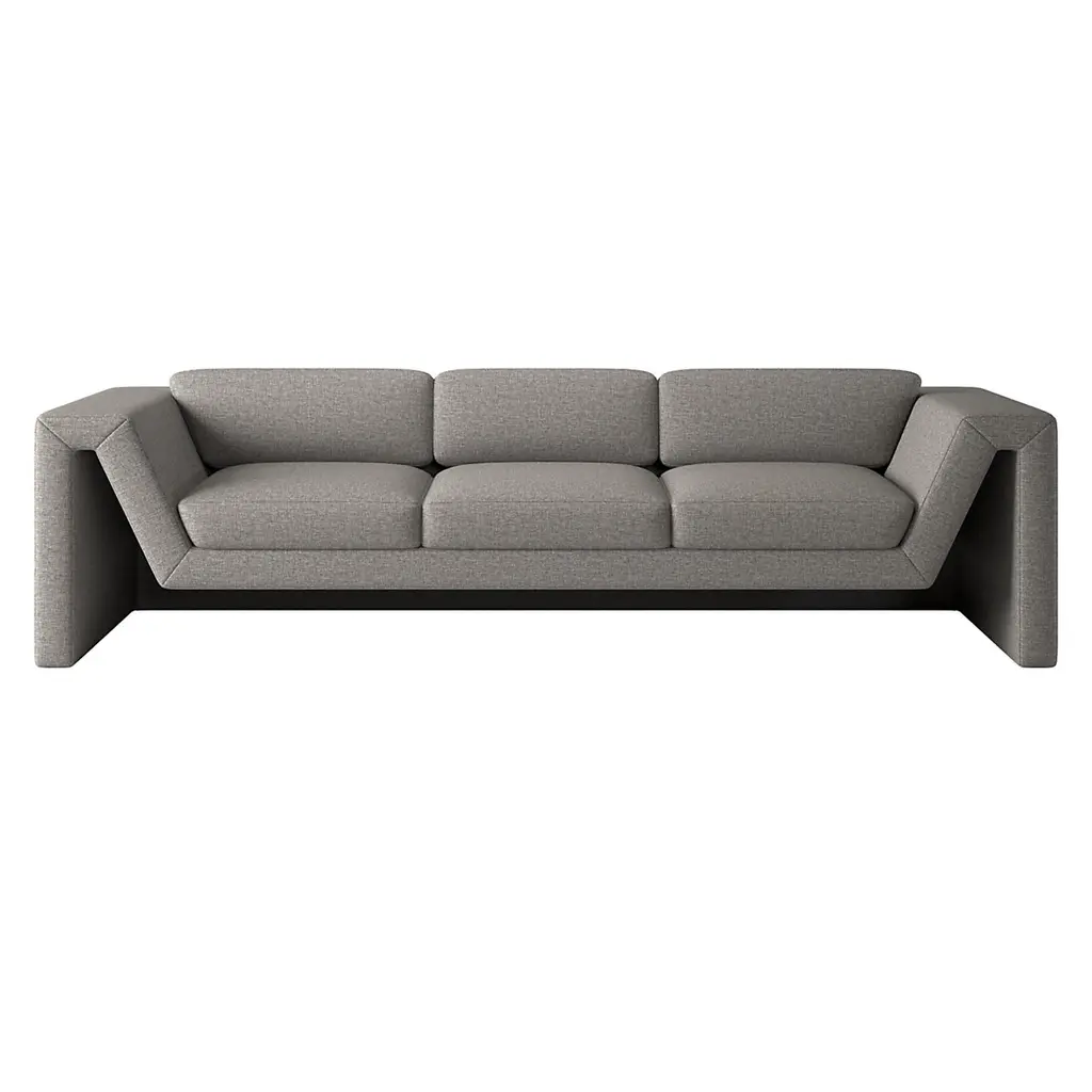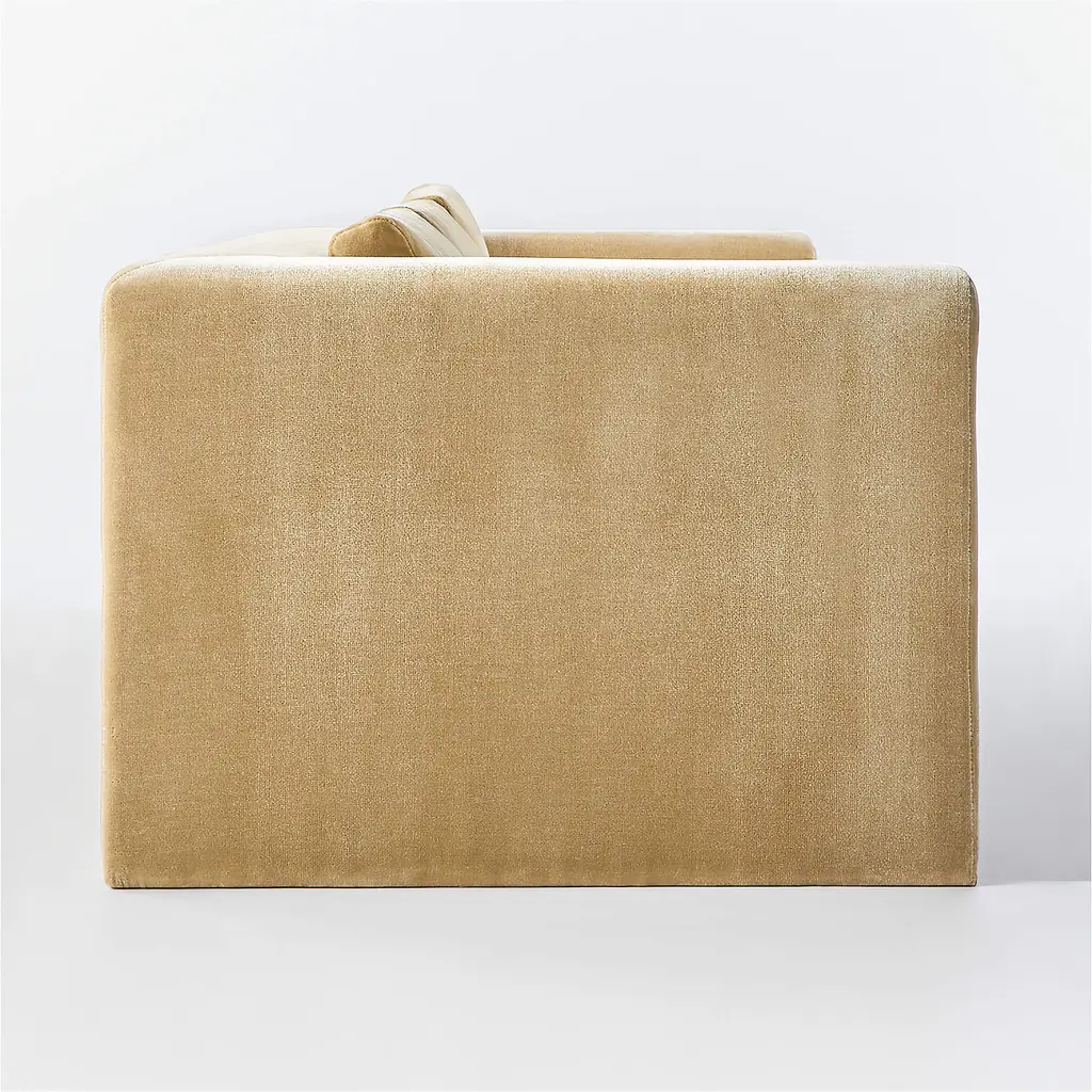 Plush camel faux mohair fabric and severe angular design meet in this vintage '70s Italian-inspired sofa by Ceci Thompson. Sleek and sculptural, solid frame wraps around the back and sides, angling at the front for major suspense. Learn more about Ceci Thompson on our blog. CB2 exclusive.