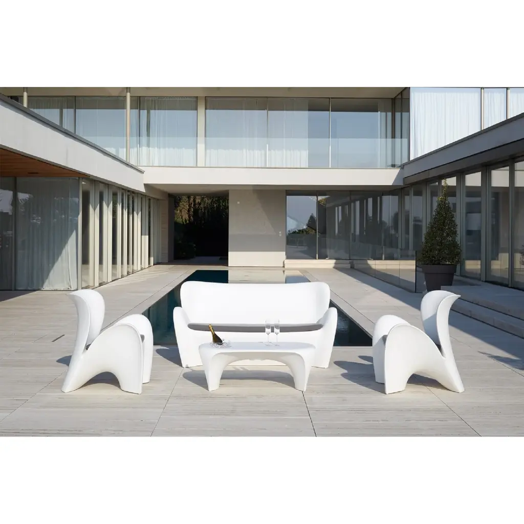 Elevate your outdoor space with the elegant and exclusive Petal Shaped Outdoor Sofa from the Lily collection by Myyour. The organic and enveloping shapes, reminiscent of a flower petal, are crafted with durable Poleasy® material to resist weather damage and make cleaning a breeze. Complete the experience with seat cushions and an icebox coffee table.