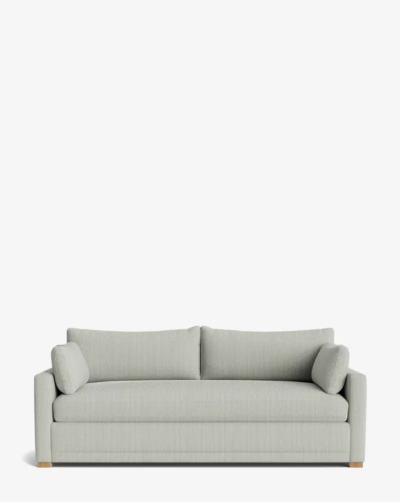 Made to order with a streamlined yet inviting design, the Peterson Upholstered Sofa is handcrafted with comfort and effortless beauty in mind. Featuring plush cushions filled with a feather blend, the sofa is available in a selection of high-quality fabrics.