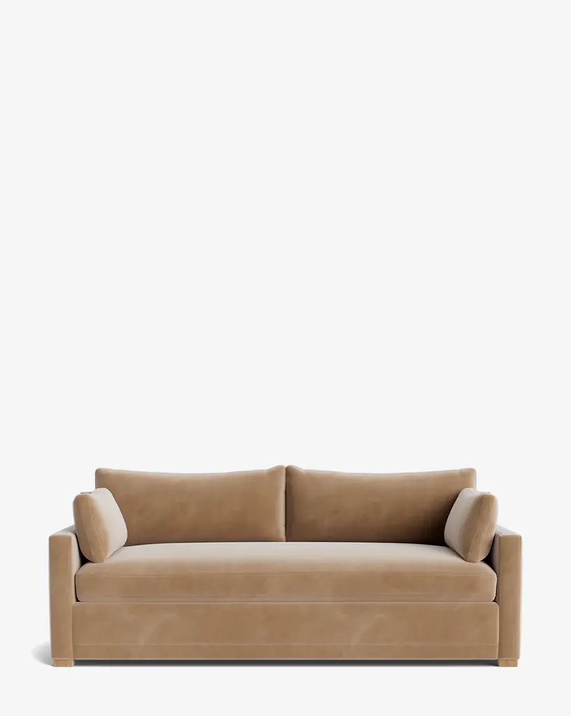 Made to order with a streamlined yet inviting design, the Peterson Upholstered Sofa is handcrafted with comfort and effortless beauty in mind. Featuring plush cushions filled with a feather blend, the sofa is available in a selection of high-quality fabrics.