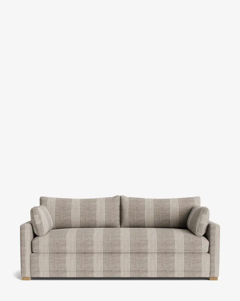 Made to order with a streamlined yet inviting design, the Peterson Upholstered Sofa is handcrafted with comfort and effortless beauty in mind. Featuring plush cushions filled with a feather blend, the sofa is available in a selection of high-quality fabrics.