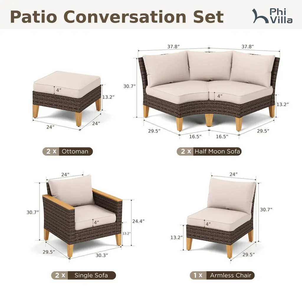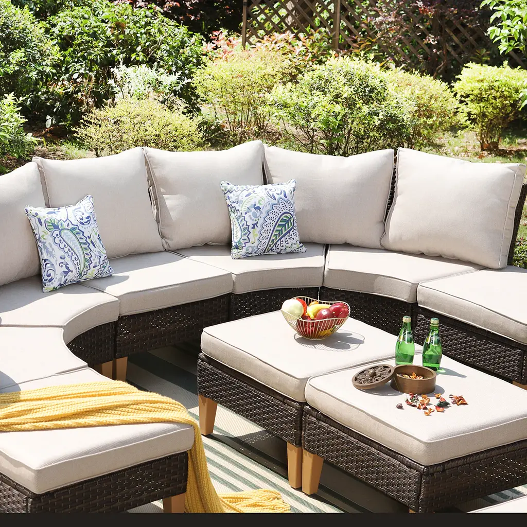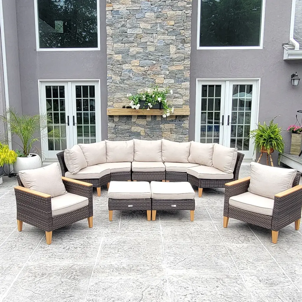 Phi Villa 9-Piece Rattan Half-Moon Curved Luxury Outdoor Sofa