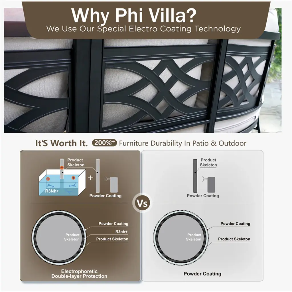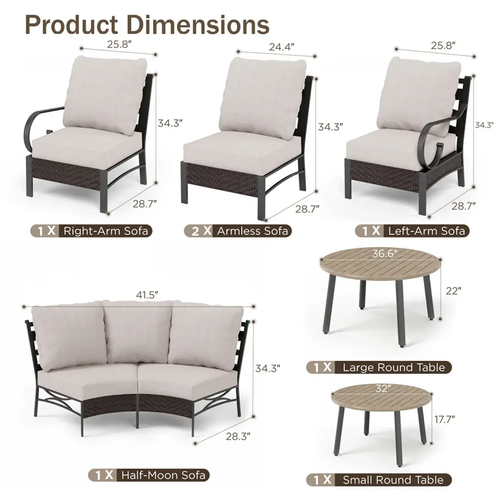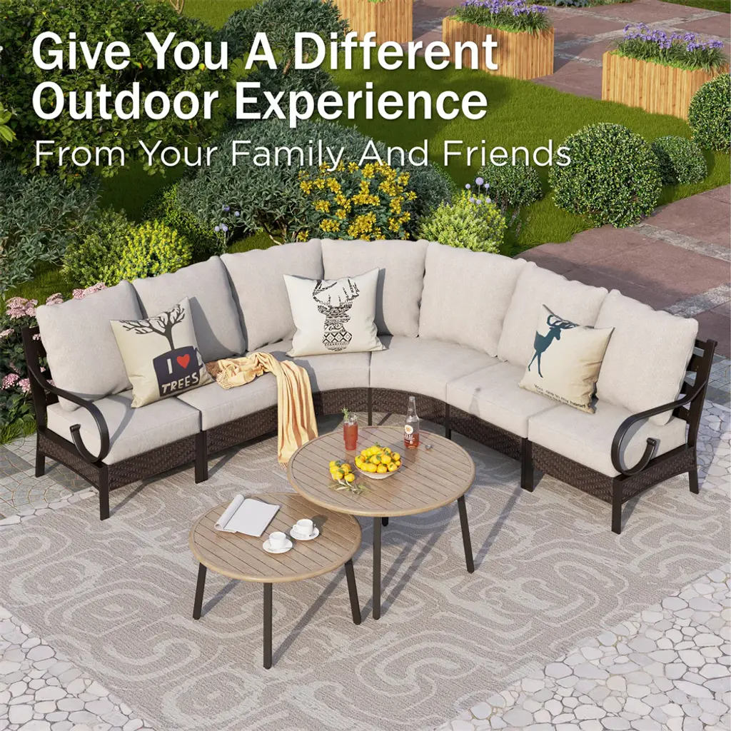 Phi Villa Half-Moon Outdoor Patio Conversation Sofa Sets With E-Coating Technology