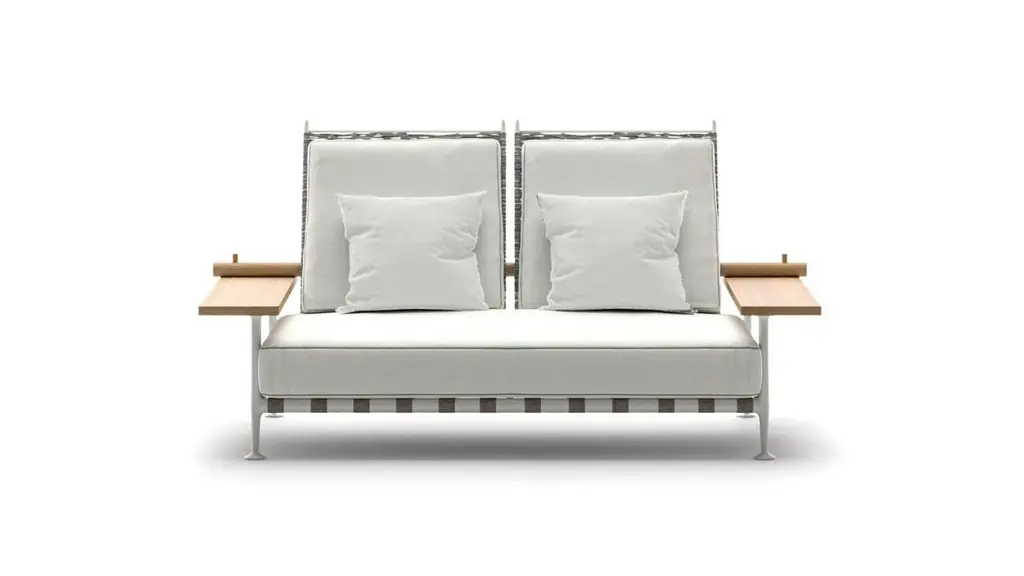 Prices vary dependent on the size/model and material of the product.Outdoor Sofa designed by Philippe Starck in 2020. Manufactured by Cassina in Italy. Defined by Philippe Starck as "a lifestyle collection of relaxed elegance", Fenc-e Nature sees the designer continue on his joint mission with Cassina to revolutionise our concept of the classic sofa, using high-quality cutting-edge materials that respect the environment. The two- or three-seater sofa has organic forms - like the die-cast aluminium base - and textural elements that celebrate its affinity with the environment. Each backrest, with frame in painted AISI 304 stainless steel, is available in hand-woven rope with an exclusive design or in natural untreated willow.