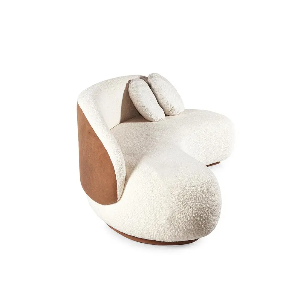The inspiration for the design features comes from the Italian name Pietra: The translation Stone, an element of organic nature that brings a feeling of biophilia and well-being to the applied environments.The Pietra couch is designed with pure, fluid and organic shapes.Covered with a mix of comfortable fabrics: off-white boucle on the front and polyester with a “natural skin” finish in coffee color on the back. It can be completely upholstered in off-white bouclé fabric. Request!The internal structure of the curved shape is made of wood. The persints and internal foam make the seat comfortable to sit on, with softness. The curved format brings people who are talking on the couch closer together, making it easier to see each other. The curved back hugs the sitter.It is a hand-upholstered product, customized for your home. The piece's by Pietra Collection are sold separately (couch, armchair, pouf and pillows) - this reference is only for the couch (The image is only suggestive, must be purchased separately.).