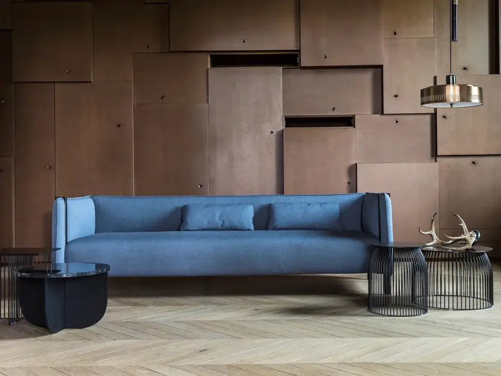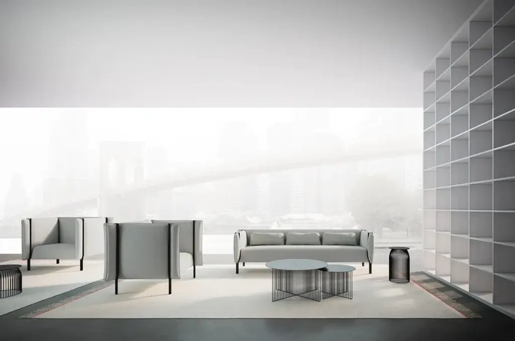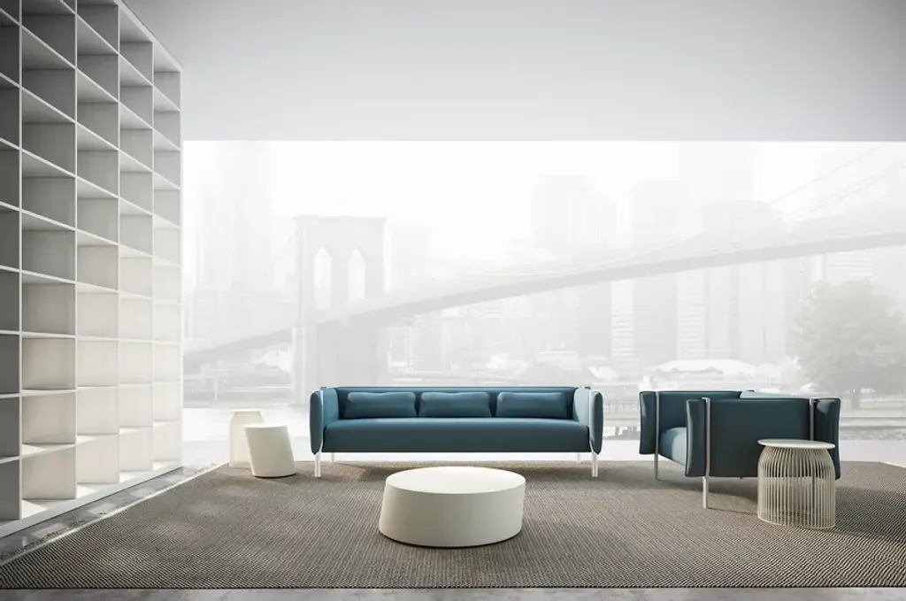 Skrivo Design’s aim when designing the Pinch collection of armchairs and sofas for LaCividina was to create areas where people could experience a little privacy and tranquillity in public spaces. The name comes from the original shape of the tubular metal frame, which literally pinches the backrest and the side pieces. This makes them into padded walls that form a sort of comfort room. The form of Pinch was developed due to the desire to combine two very different materials: polyurethane foam, which has the capacity to change shape, and steel, the quintessential rigid material. The pairing of these two elements has produced a collection of sofas with innovative shapes. Rather than stopping at the conventional height, the structure of the legs continues and takes on an innovative supporting function, holding steady the padded walls and giving the seating an original, high impact overall look.Pinch products can be made even more practical with the addition of tables to the structures to make the seats into comfortable places for working, studying or eating. In order to cater to the many different needs of the contract and residential markets, the sofas and armchairs in the Pinch collection come in four widths: 110 cm, 160 cm, 210 cm and 240 cm. They are all available with a choice of three wall heights: 70 cm, 90 cm and 140 cm.
