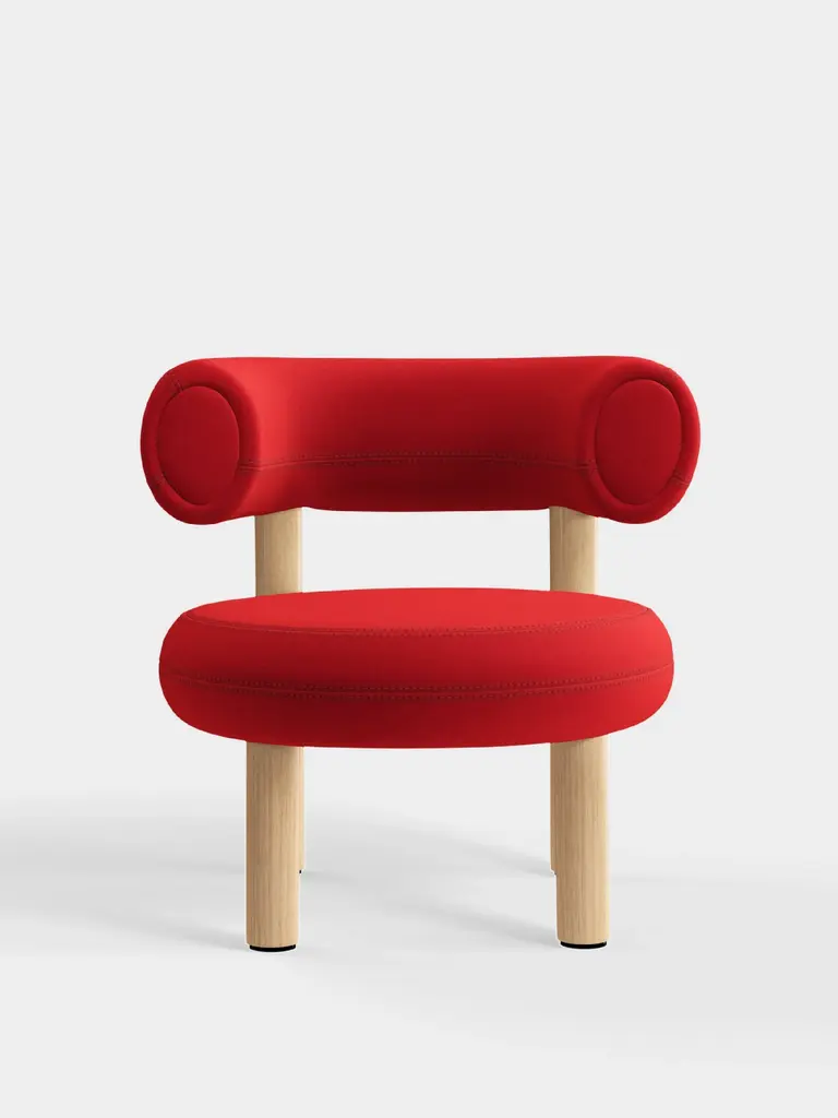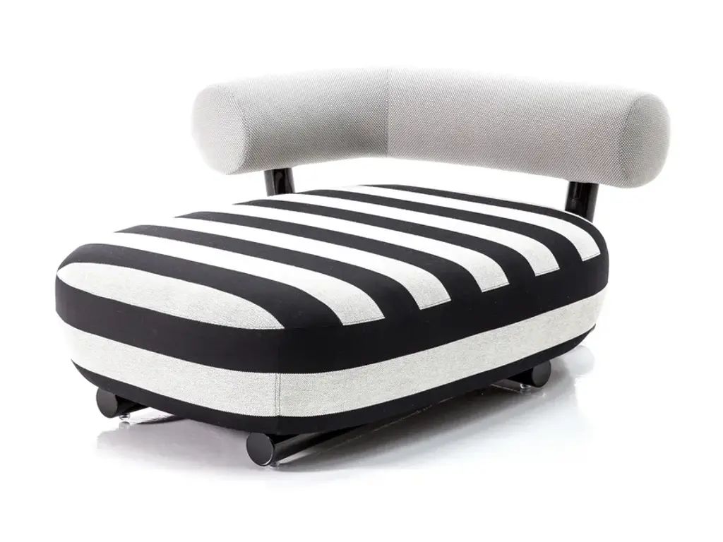 Placing the coarse before the fine, preferring a choice that bucks the trend compared to the most common research into the slim form. Despite this, staying light, ethereal. The design is thus structured around the most reassuring aspect of the oversized: the simplicity. The minimalist and rugged structure is built with a powder-painted aluminium tube with diameter of 80 mm. Resting on it is a seat cushion with a rounded physique, a covert suggestion of the idea of the inflatable module. The back, like a bold parenthesis, promises comfort. The effect, as well as the natural appeal, is that of a pleasing roundness, casual and lightweight.Seat is stress-resistant flame-retardant polyurethane in varied densities and polyester fiber on hardwood frame. Back is injected flame-retardant polyurethane foam and polyester fiber. External backrest supports and legs are tubular steel with chrome finish or powder coat; transparent PVC glides. Available in leather or fabric. Pipe collection covers are not removable.