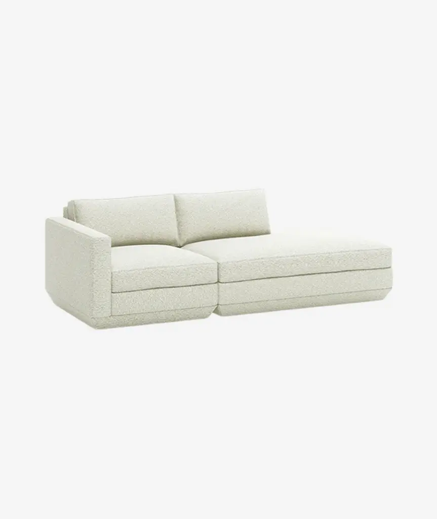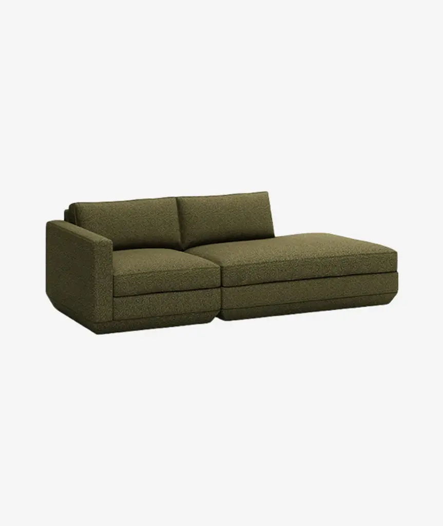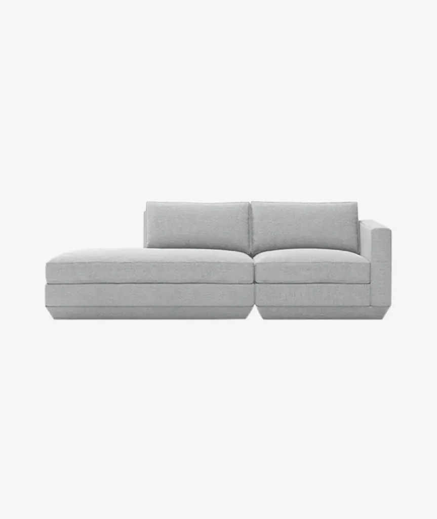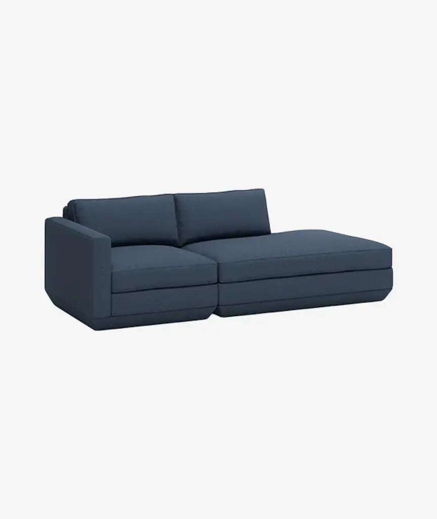 The Podium Modular Collection is an adaptable seating system that brings modern elegance and luxurious comfort to any space. The Podium features seven core components (Right Arm, Left Arm, Armless, Corner, Ottoman, Left Lounge and Right Lounge) that can be arranged in unlimited configurations to suit any vision or layout. Components can then be easily reconfigured or added later to adapt to your evolving lifestyle. Each component showcases a relaxed silhouette inspired by 1970’s Modernism: a low and deep sit created by plush seat and back cushions (filled with eco-friendly synthetic down derived from recycled water bottles), and an attractive, subtly angled, chamfered base.