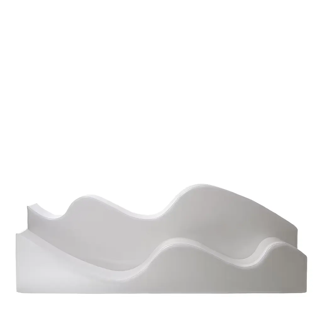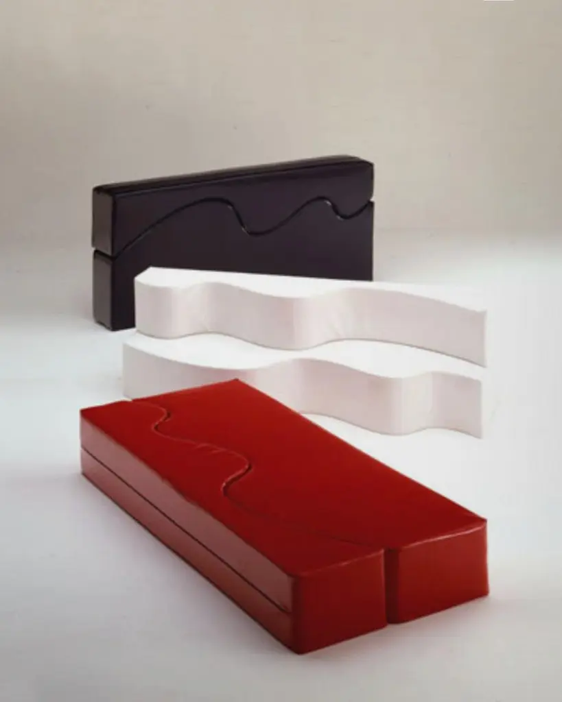 Designed in 1967 by the Florentine Radical group Archizoom, this was the first sofa without a conventional frame. It is composed of two waves made from a polyurethane block cut into two parts with an S—shaped incision, which can be interlocked and stacked to produce different configurations. The lightness and modular design permit a range of various uses: Superonda can be a sofa, a bed or a chaise longue. Like many of the pieces designed by the Archizoom group, it challenges bourgeois conventions, stimulating the creativity and fantasy of the user. The shiny leatherette cover in the basic colors of white, black and red accentuates the pop image.materials:[structure] cut from a block of polyurethane[covering] shiny PVC coated fabricAvailable in different options:Finish:• White• Black• RedDIMENSIONS:240[W] x 36[D] x 100[H] cmAvailable in different options, please inquire with us.