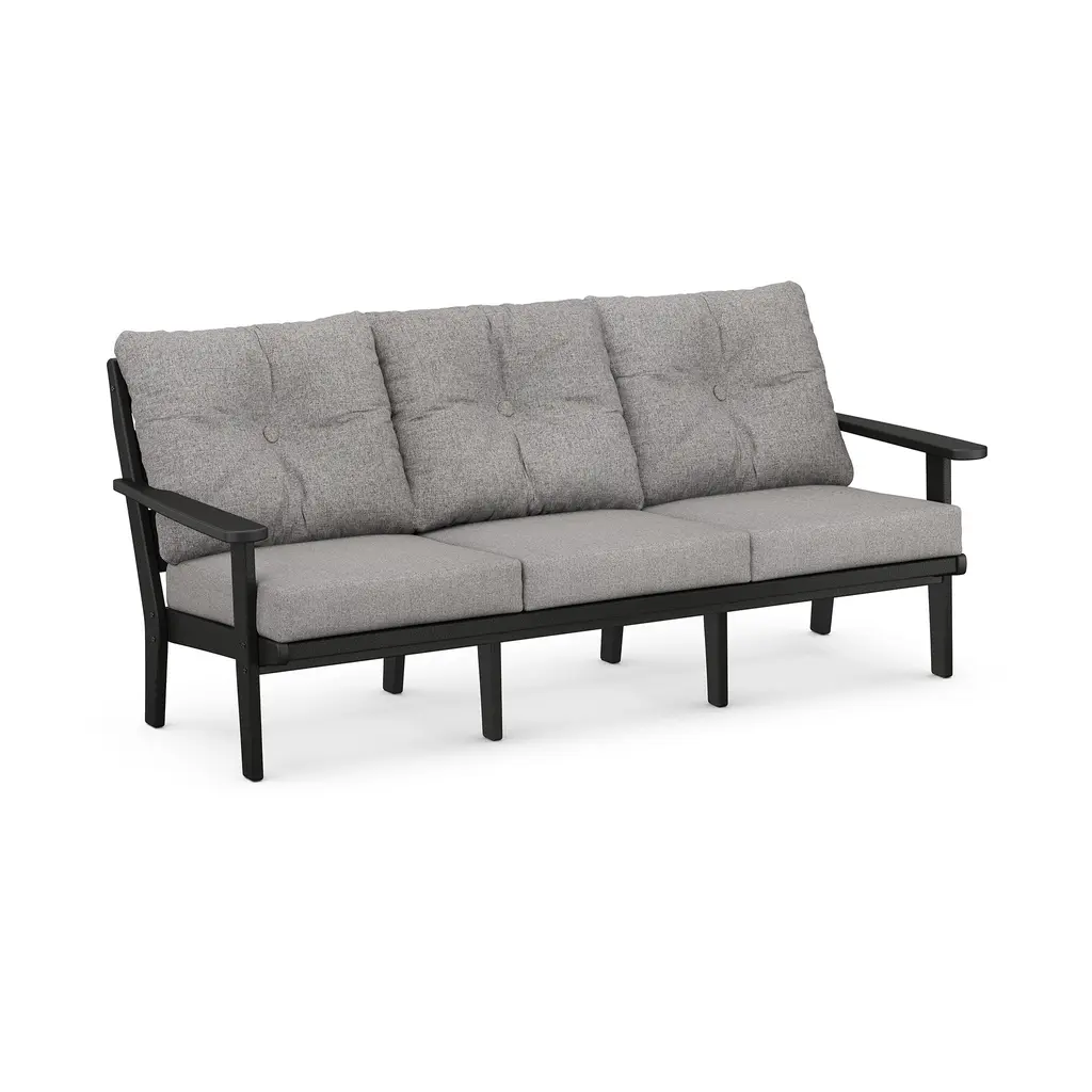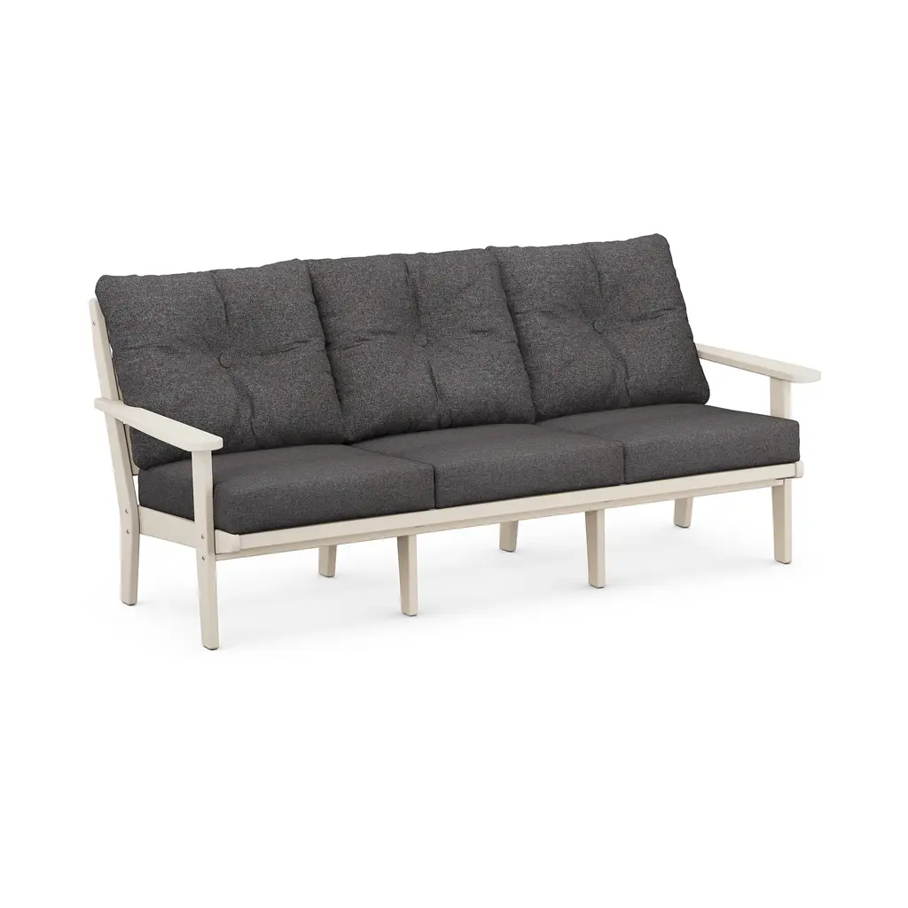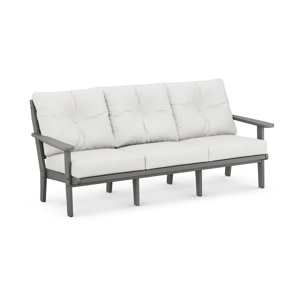 Laid-back relaxation on the waterfront is the picture that our Lakeside Deep Seating Sofa evokes in an instant. Plush tufted seat cushions sit atop a durable genuine POLYWOOD® lumber frame complete with marine-grade hardware. This all-weather outdoor sofa is mildew-resistant and fade-resistant against a wide range of natural elements, including hot sun and high winds. The simple clean lines and polished design of this expertly fashioned American-made outdoor sofa will make any patio, lawn or deck feel like a calm day at the lake.
