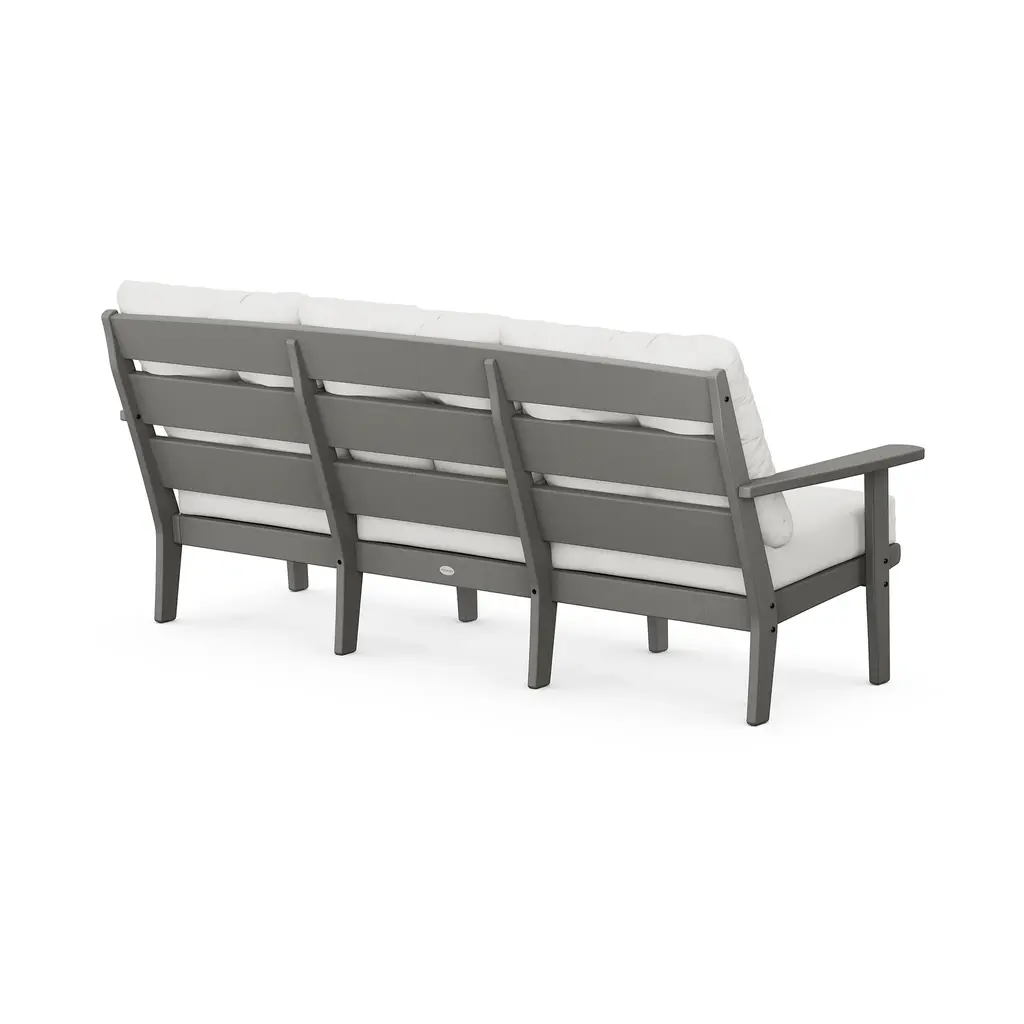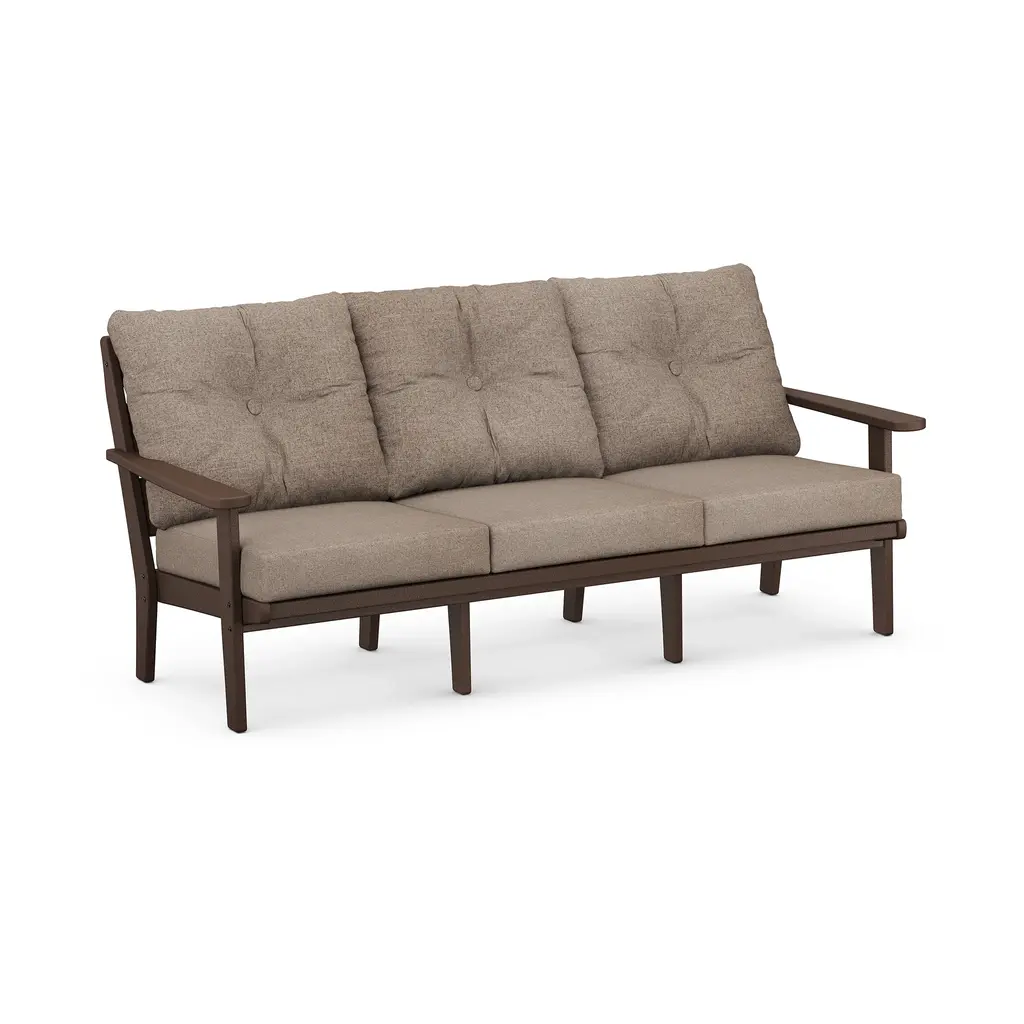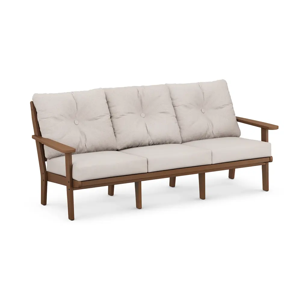 Laid-back relaxation on the waterfront is the picture that our Lakeside Deep Seating Sofa evokes in an instant. Plush tufted seat cushions sit atop a durable genuine POLYWOOD® lumber frame complete with marine-grade hardware. This all-weather outdoor sofa is mildew-resistant and fade-resistant against a wide range of natural elements, including hot sun and high winds. The simple clean lines and polished design of this expertly fashioned American-made outdoor sofa will make any patio, lawn or deck feel like a calm day at the lake.