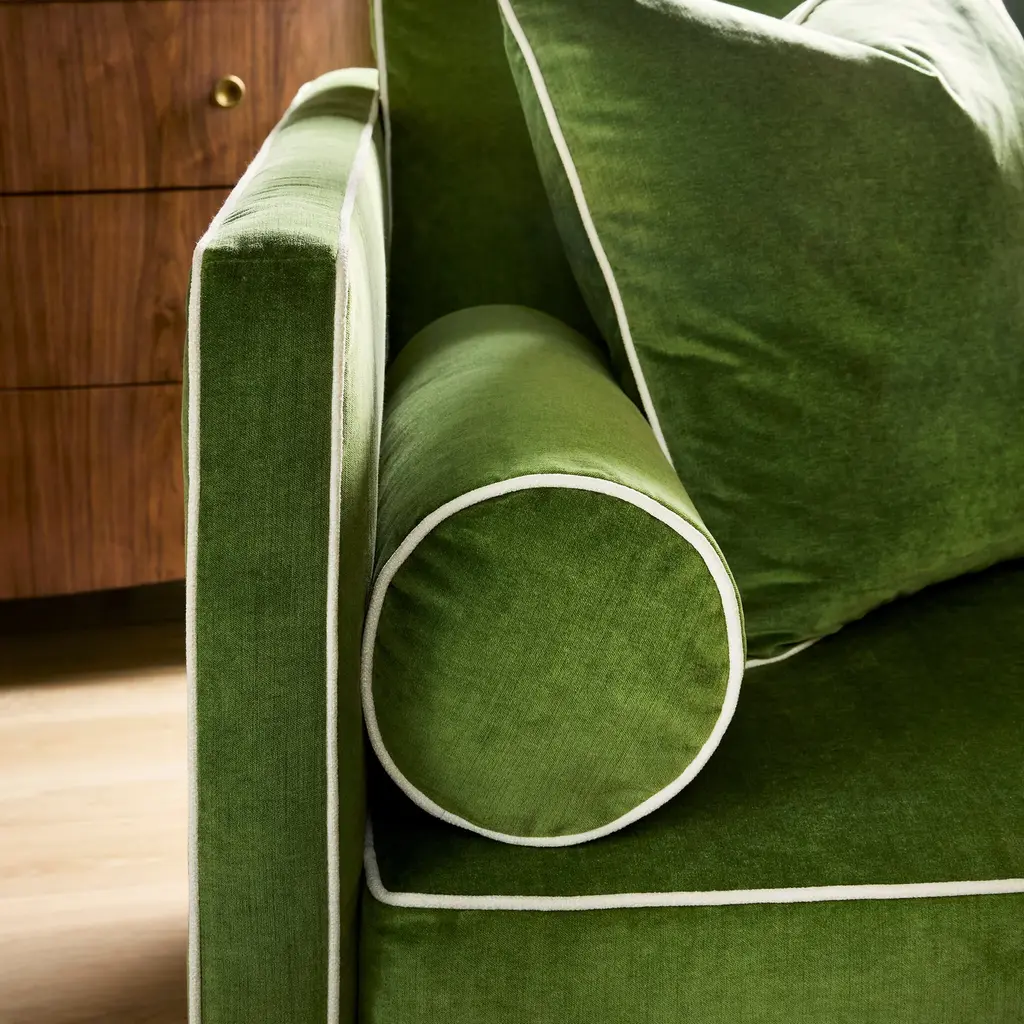 Our Pridwin Sofa is both contemporary and classic, and the clean lines and bold scale make it a stylish, comfortable choice for both casual family gathering areas and more formal living rooms. The Pridwin collection also includes a loveseat (sold separately). Ships In 8-10 Weeks Two 23" x 9" cylinder throw pillows Two 21" square throw pillows Two loose back pillows One loose seat cushion As Shown Fabric: Rayburn Oatmeal, Boca Moss with Adalio White Contrast Welt (lifestyle) As Shown Finish: Antique Walnut If you choose to purchase COM, once you have placed your order a customer service rep will contact you regarding where to send your fabric. Please note that current lead time is 17-19 weeks once your fabric arrives at the factory, and if unused fabric is under 1.5 yards, it cannot be sent back to you.This product can be special ordered in additional fabrics, leathers, finishes, and cushion fillings. Click here to email us for for additional information about special ordering.This image is for illustrative purposes only. The colors shown are accurate within the constraints of lighting, photography, and the color accuracy of your screen.
