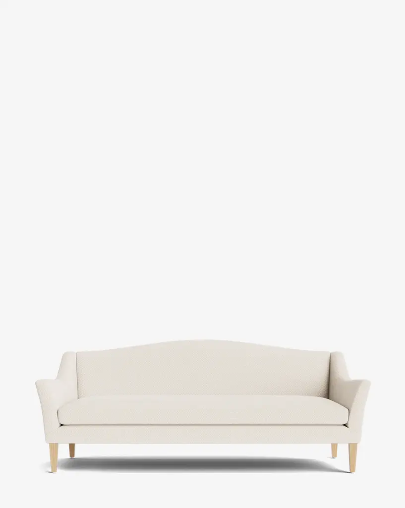 Made to order with a classic silhouette, the Prudence Sofa 78" has tapered oak legs that hold its frame with elegantly curved arms and a rounded top. Designed to complement and elevate your home, the sofa is available in a selection of high-quality fabrics that highlight its timeless structure.
