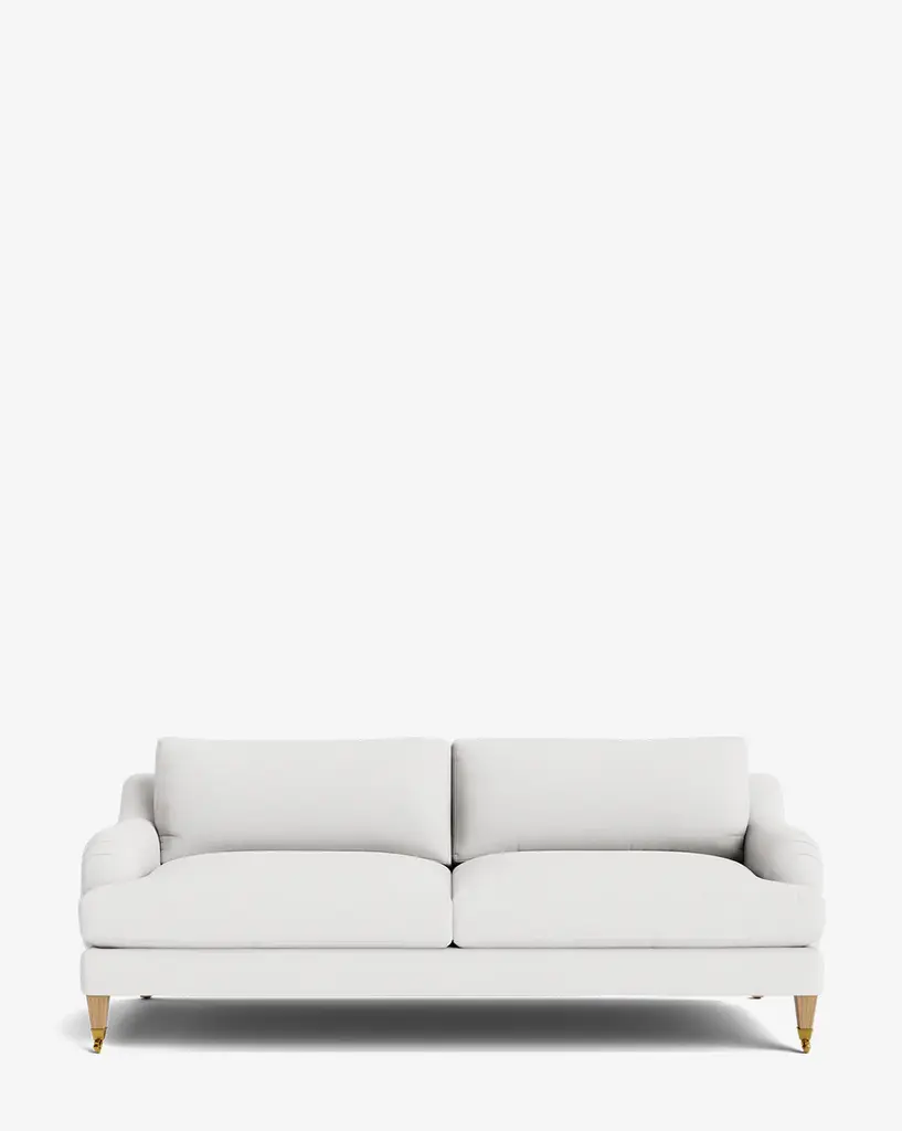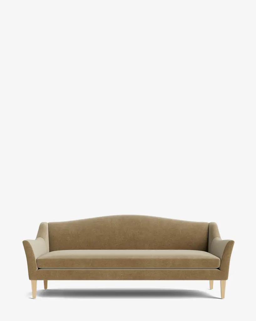 Made to order with a classic silhouette, the Prudence Sofa 78" has tapered oak legs that hold its frame with elegantly curved arms and a rounded top. Designed to complement and elevate your home, the sofa is available in a selection of high-quality fabrics that highlight its timeless structure.