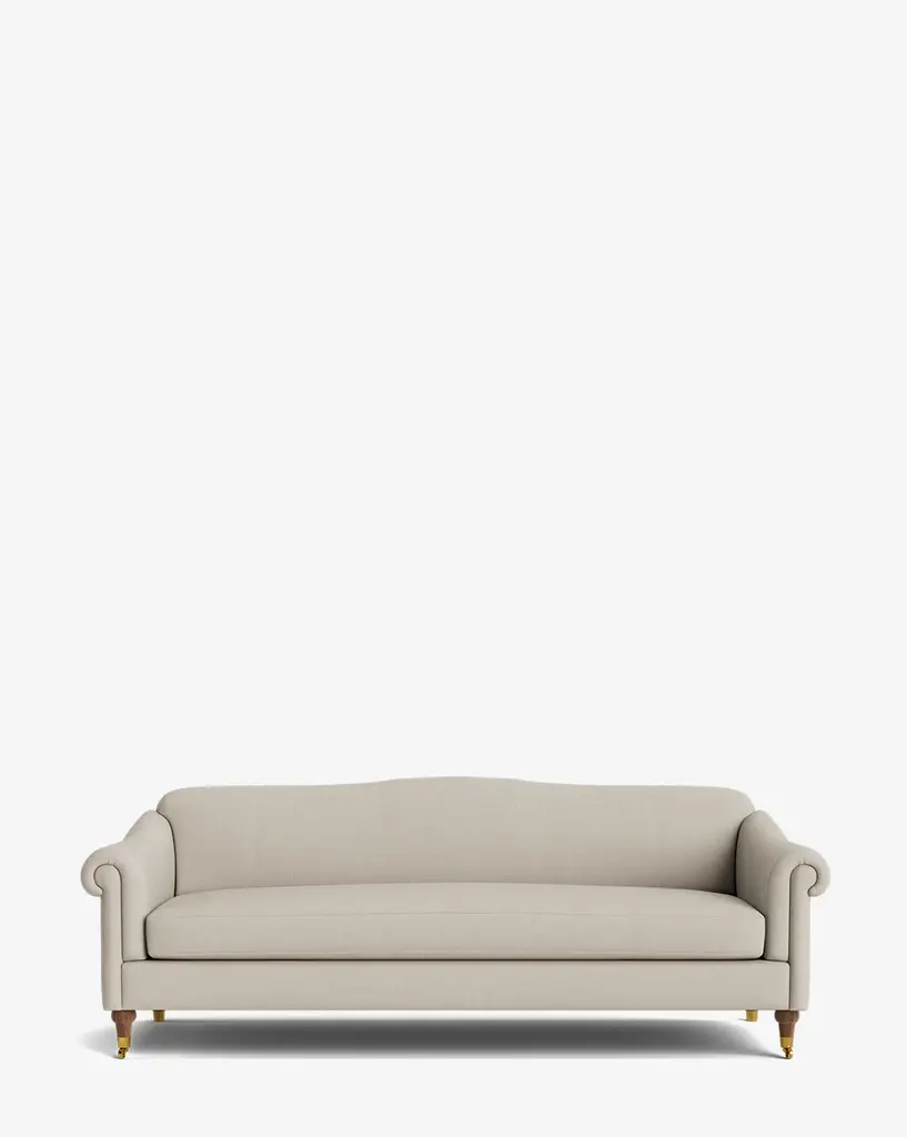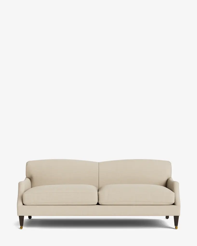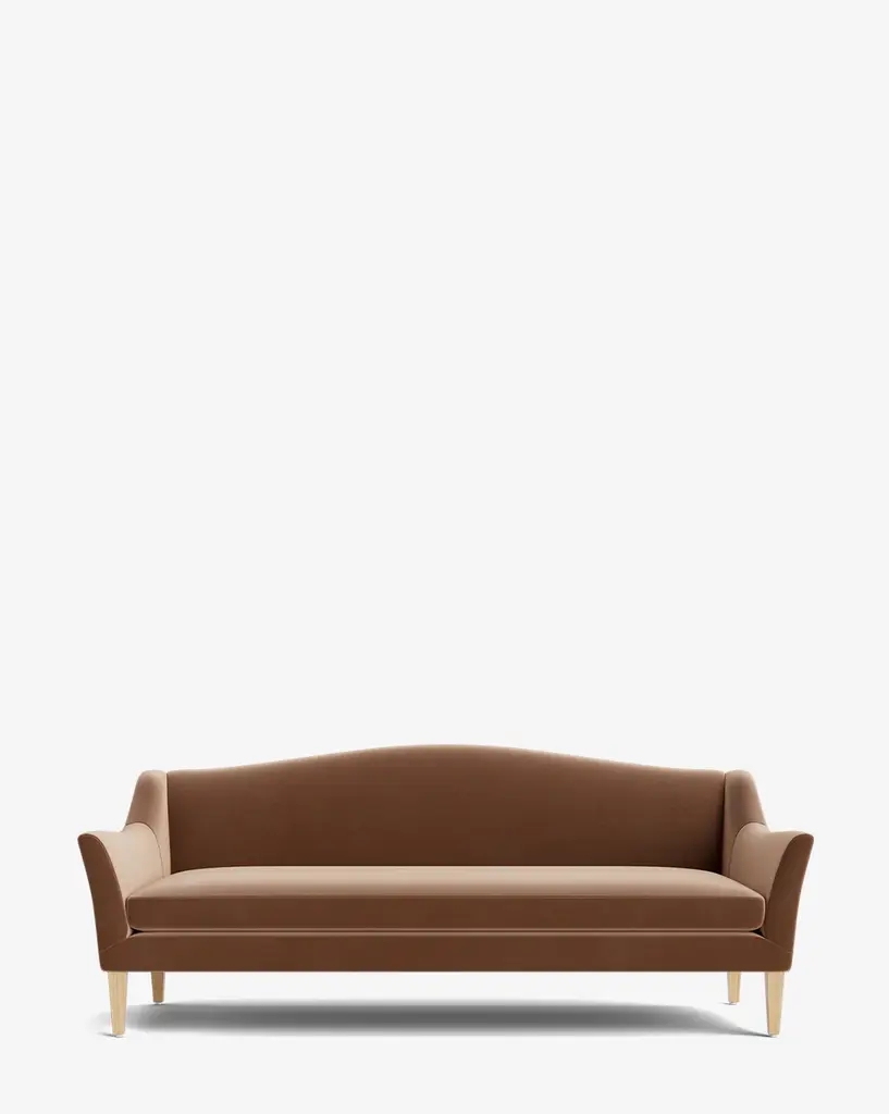Made to order with a classic silhouette, the Prudence Sofa 78" has tapered oak legs that hold its frame with elegantly curved arms and a rounded top. Designed to complement and elevate your home, the sofa is available in a selection of high-quality fabrics that highlight its timeless structure.