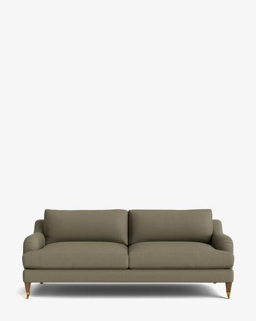 Made to order with a classic silhouette, the Prudence Sofa 78" has tapered oak legs that hold its frame with elegantly curved arms and a rounded top. Designed to complement and elevate your home, the sofa is available in a selection of high-quality fabrics that highlight its timeless structure.