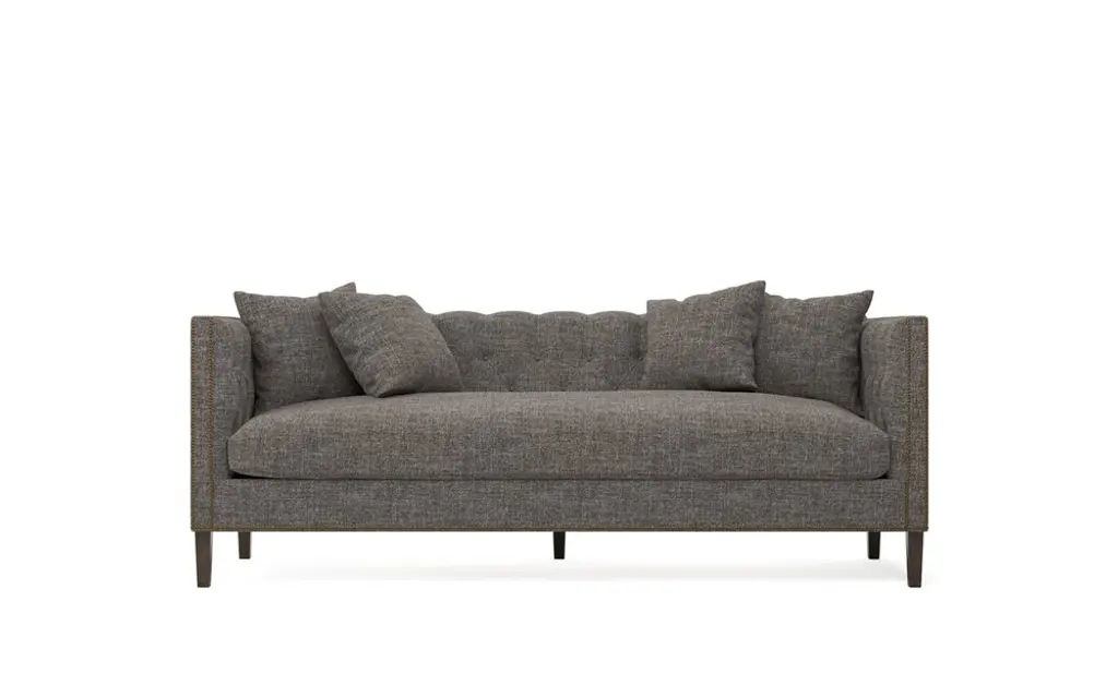 Made to order with a classic silhouette, the Prudence Sofa 78" has tapered oak legs that hold its frame with elegantly curved arms and a rounded top. Designed to complement and elevate your home, the sofa is available in a selection of high-quality fabrics that highlight its timeless structure.