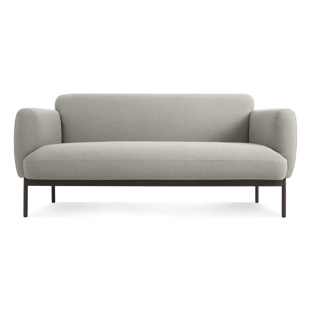 A well-rounded contemporary sofa, the Blu Dot Puff Puff Studio Sofa is all curves, boasting a sumptuous, neatly tailored seat and back, supported by a hardwood frame and rounded powder-coated steel base. A choice of two handsome upholstery colors ensures that the Blu Dot Puff Puff Studio Sofa occupies a central place in any well-appointed modern living room. Features